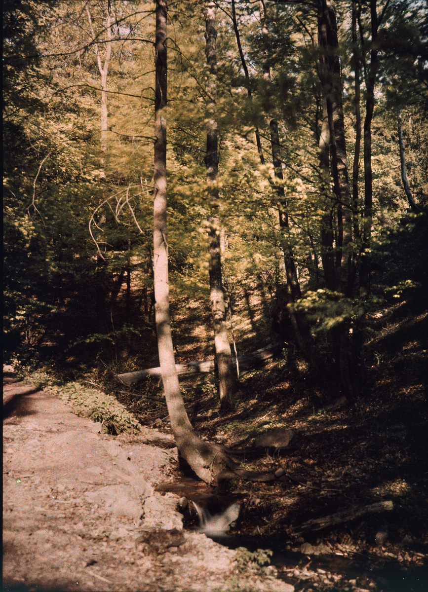 Lumières-autokrom. Skogsbäck i bokskog, Görbersdorf Schlesien. Fotograferad i maj 1910 f/12, 10 sek. exponering.
