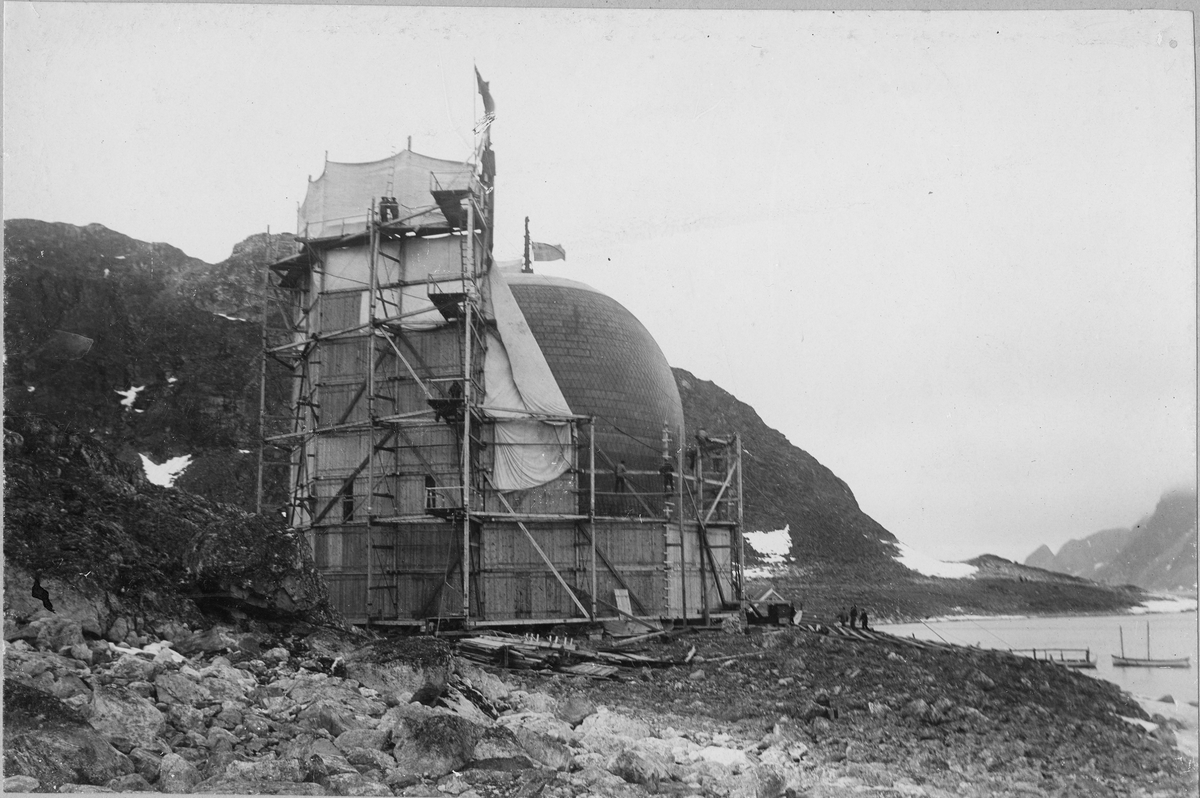 Andrées Polarexpedition 1897. Ballonghuset sett från väster vid ankomst till Spetsbergen den 30 maj 1897.