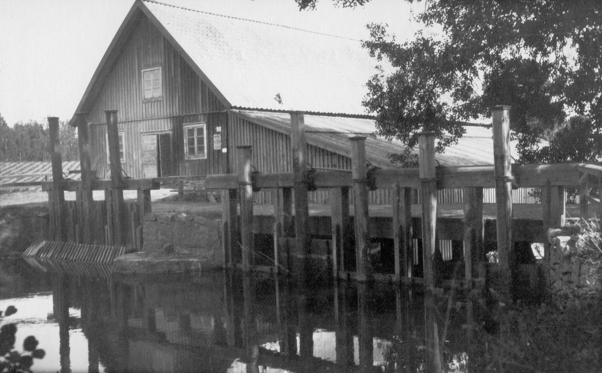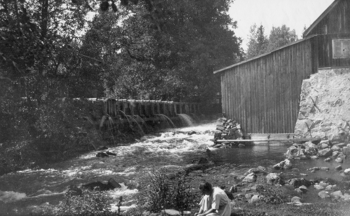 Fabriksbyggnader vid Falerum, Norra Tjust. Motiv nedanför spinneridammen.