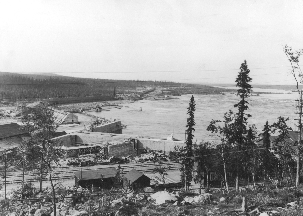 Forshuvudforsens kraftverk. Intaget till kanalen och rännan vid Forshuvud. Forshuvud - Domnarvet.