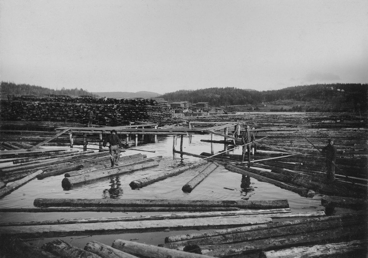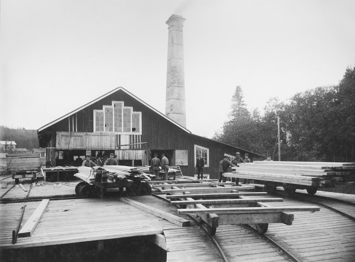 Utvägning av virket till brädgården vid Salsåker Sågverk, Ångermanland.