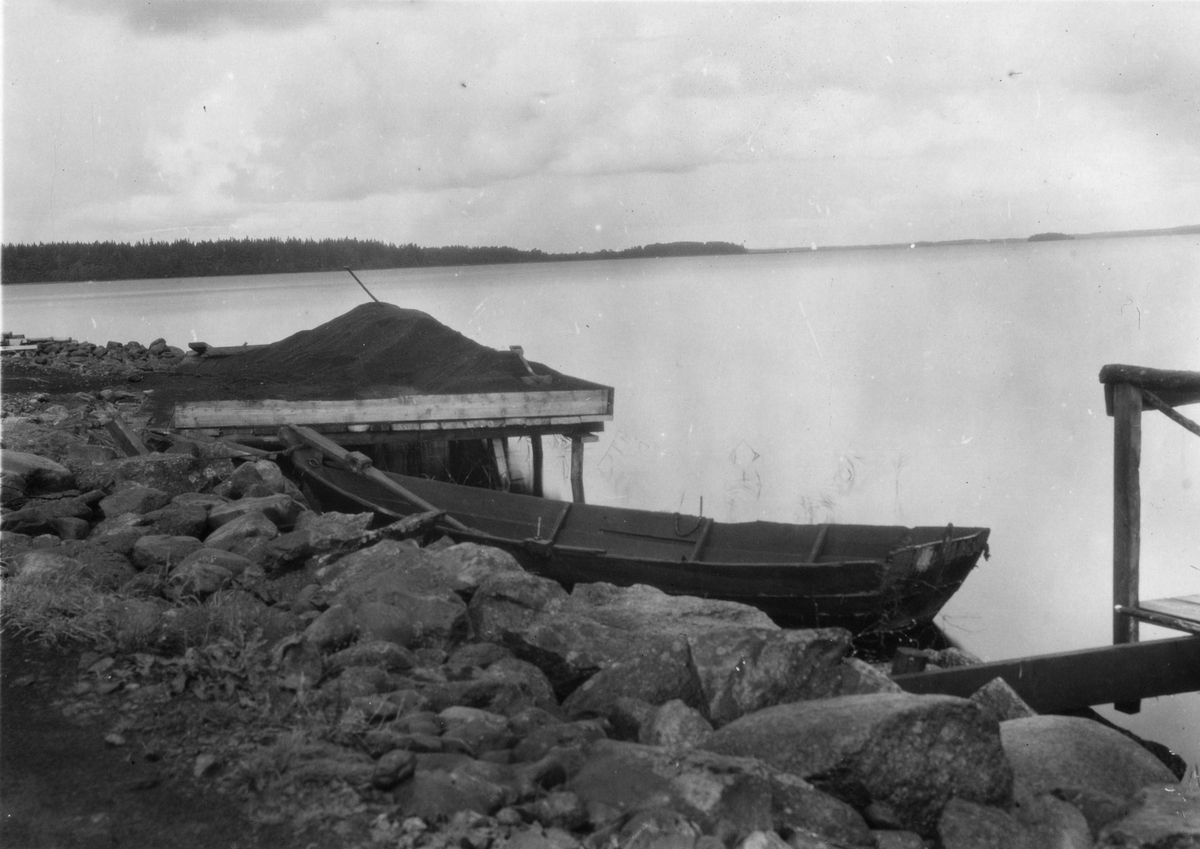 Huseby Bruk, Småland. Malmbåt för transport av malm från upptagningsverket till stranden.