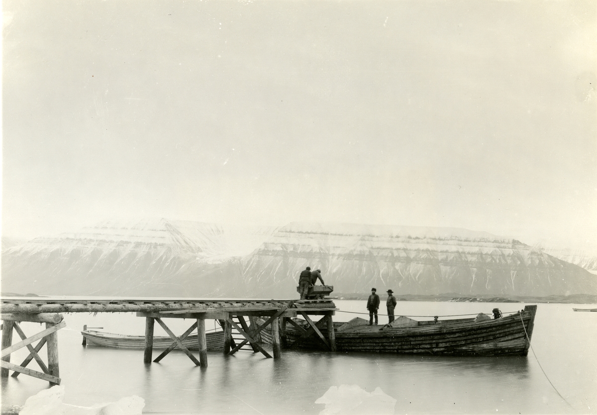 Sveagruvan. Pråmen "MOses" med första kollast för brukning, september 1918.