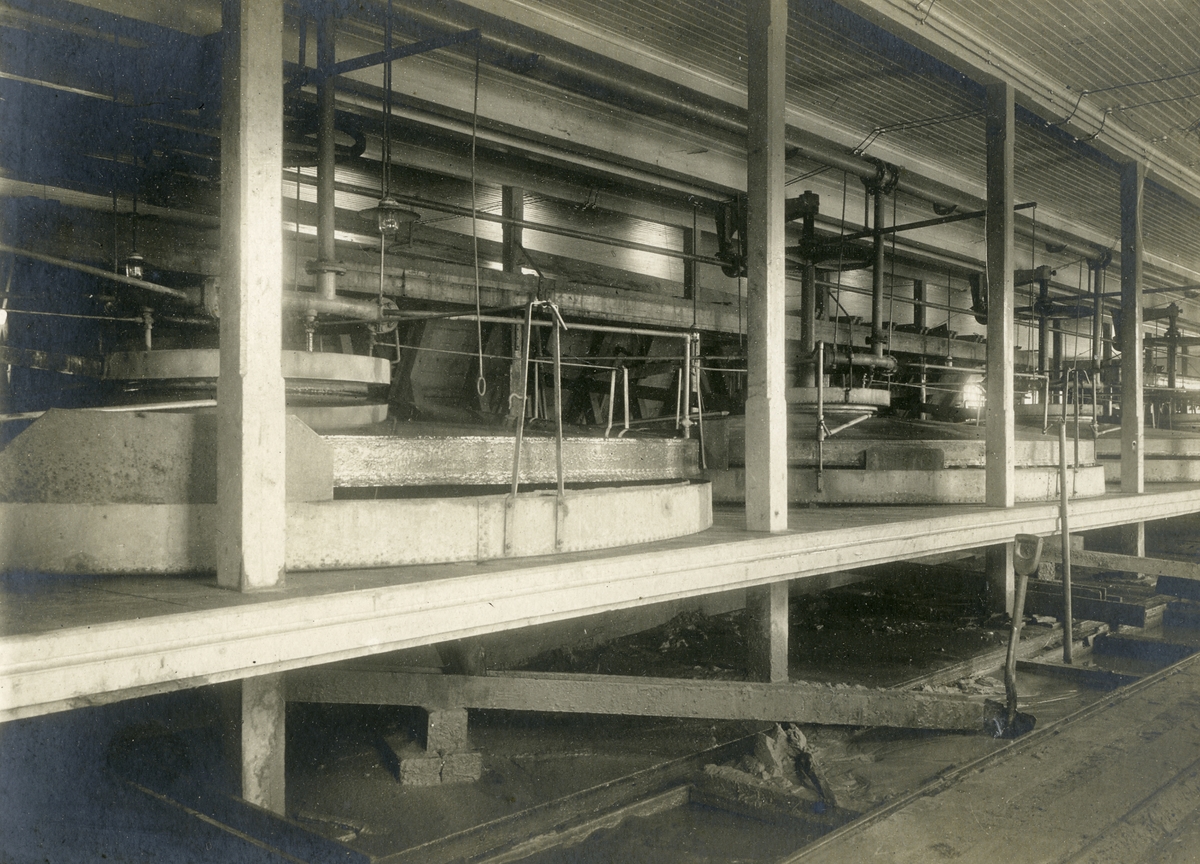 Interiör från "Våta verket" vid Norbottens Malmförädlingsfabrik på Svartön i Luleå i september 1901.