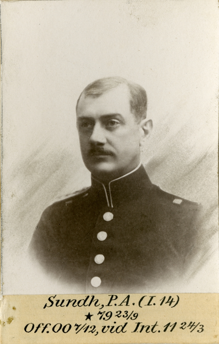 Porträtt av Per Adolf Sundh, officer vid Hälsinge regemente I 14 och Intendenturkåren.