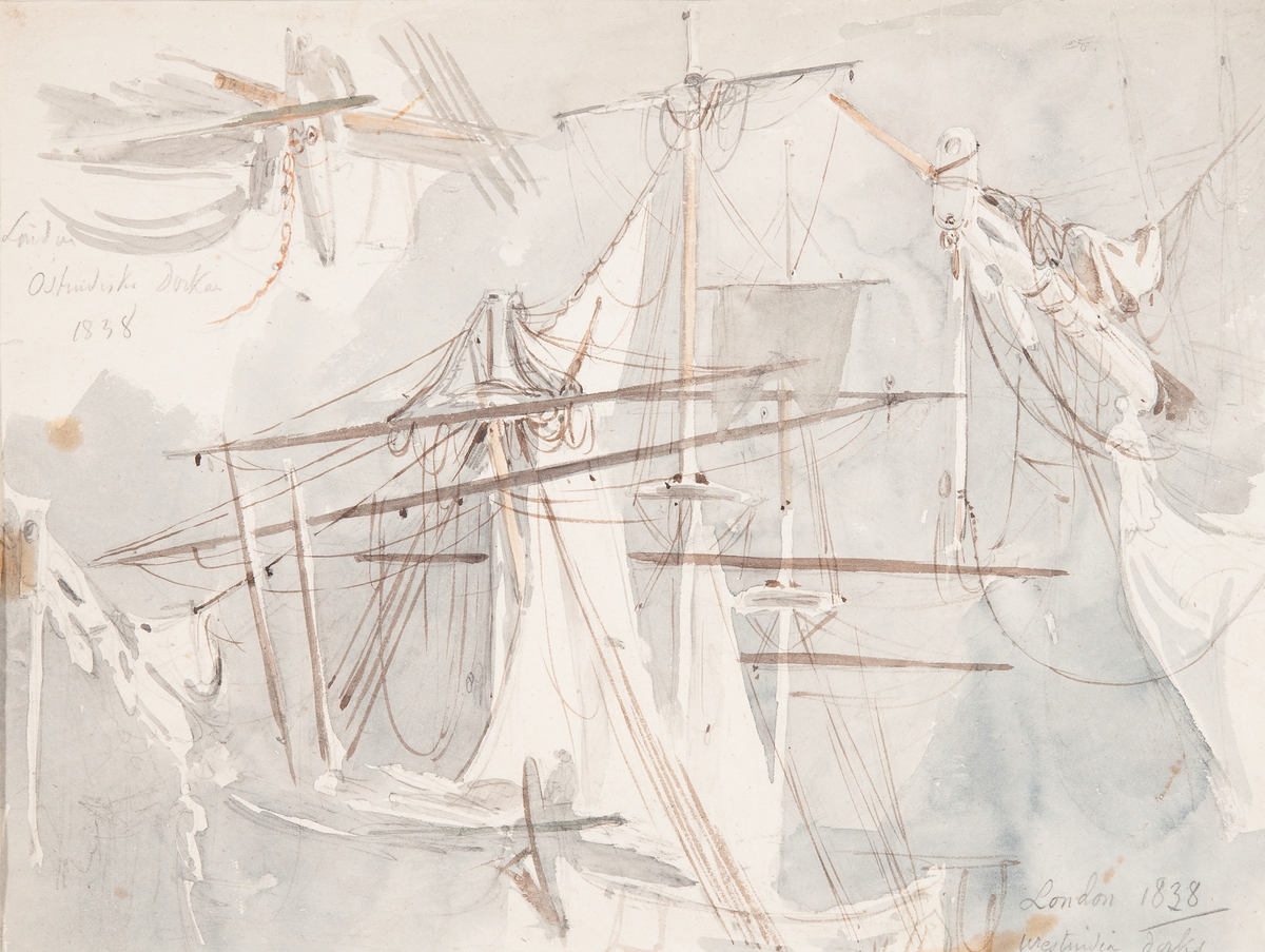 "Interiör av vallonsmedja vid Gimo bruk 1838". Tuschlavering (nr 38) av Fritz von Dardel (1817-1901). Inv nr 67483. Uppland, Olands härad, Skäfthammars socken, Gimobruk.