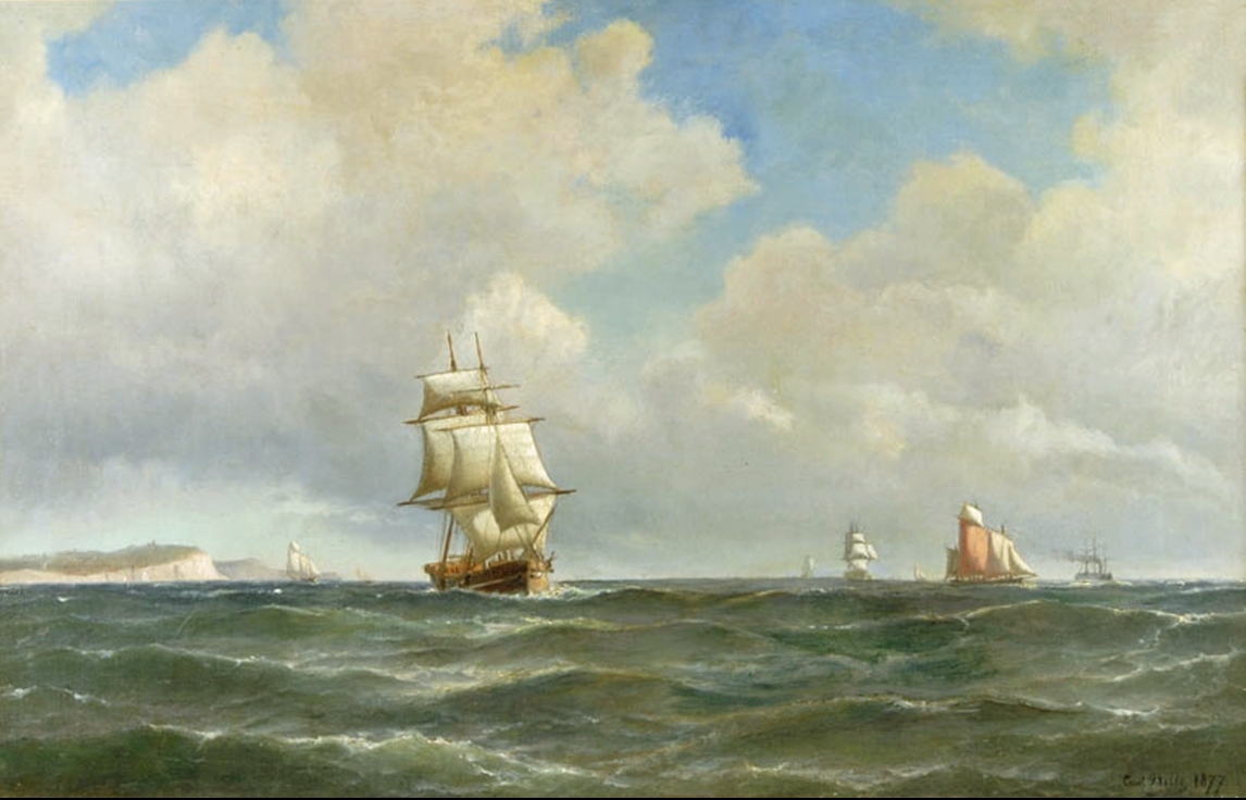 Expeditionsfartyget Vega av Göteborg, byggt i Bremerhafen 1872. Fotografi av Carl Gustafson, Karlskrona. vega på redden i Carlskrona. I mitten Vega före avfärden 1878. Gåva av kapten sam Svensson 30/5 (19)47. refoto Nenkler, SSH