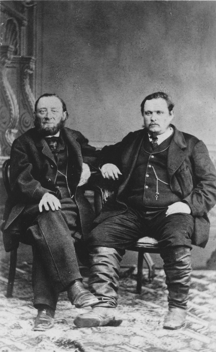 Text på kortets baksida: "Gästgifvare Olson med fru, Åsen. En vårdag 1877".