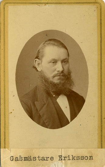 Text på kortets baksida: "Gasmästaren vid Uddevalla Gasverk. Eriksson".