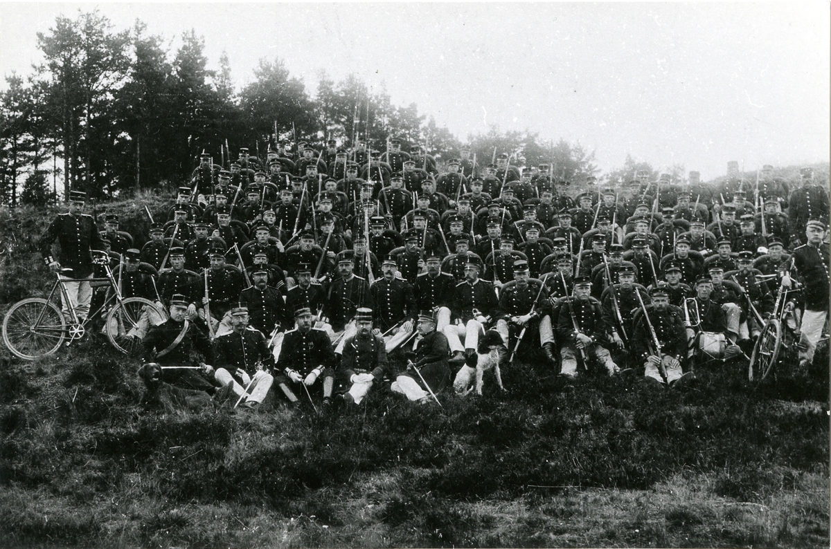 Grupporträtt av Östra Närkes skvadron vid Livregementets husarer K 3 på Sannahed.