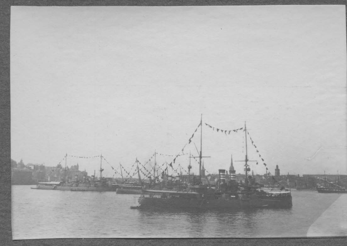 Den tyska kejserliga jakten HOHENZOLLERN fotograferad på Stockholms ström under Wilhelm II:s besök i Stockholm 1908.