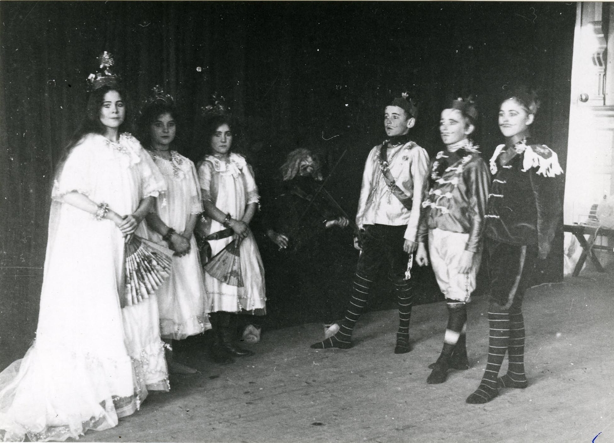 Skolbarn i Norrbyskär spelar upp en tableau i kyrksalen 1908. Skollärare Sjödin var initiativtagare till ungdomsverksamheten.