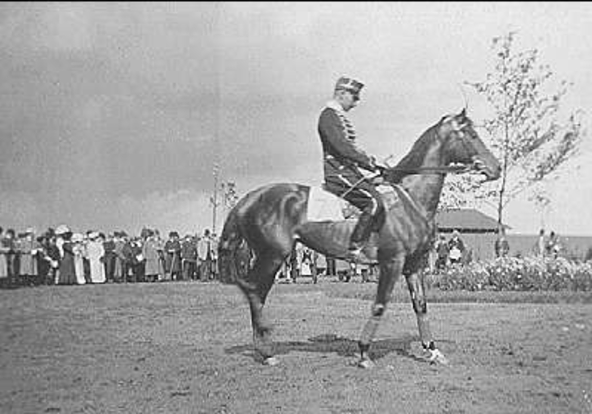 Livhusarer på resa och kommendering. Efter slutad släpjakt. Löjtnant H. Hedenstierna. Königl. Bayrische Equitations-anstalt München 1908-1909.