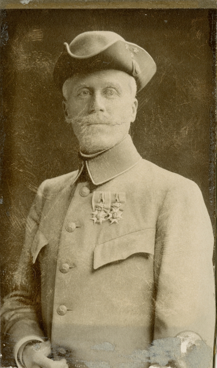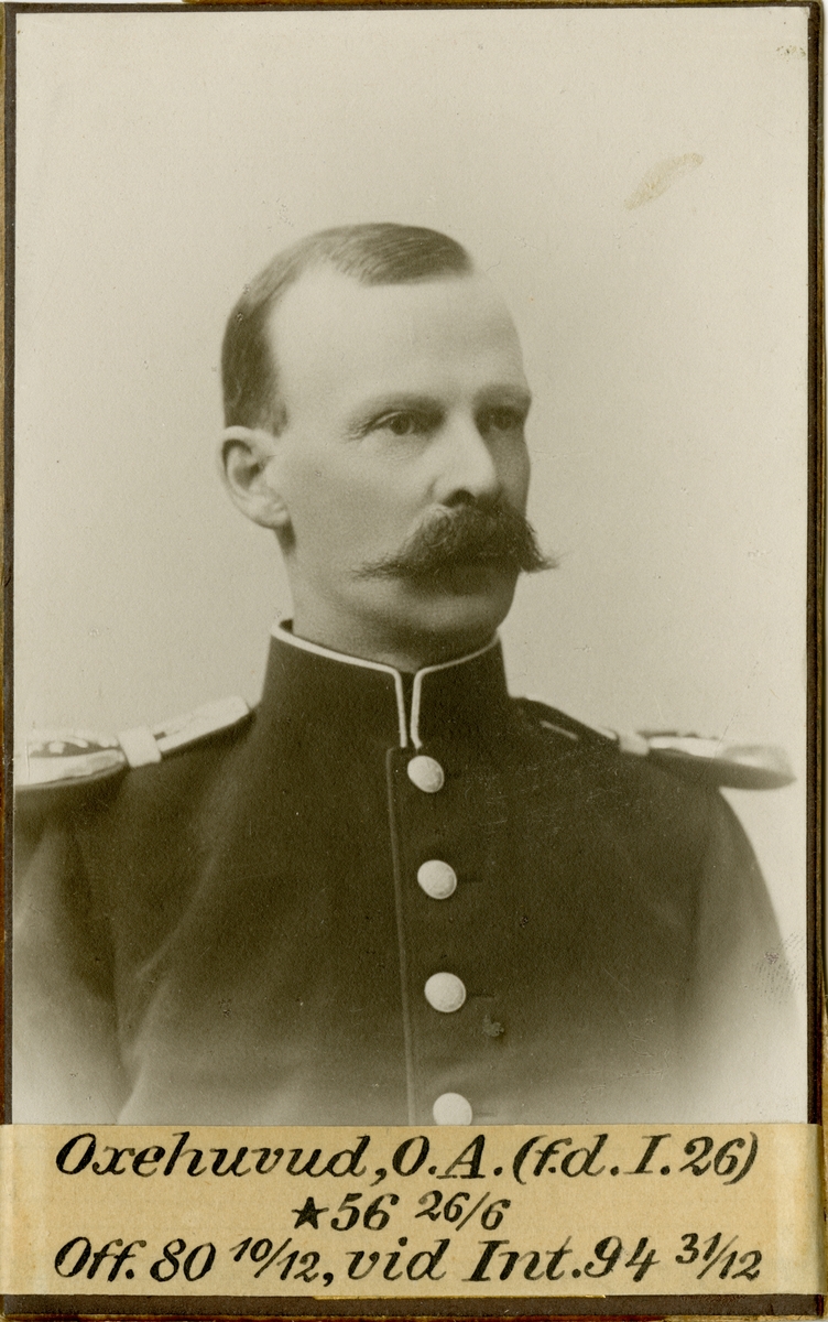 Porträtt av Olof Axel Oxehufvud, officer vid Värmlands fältjägarkår I 26 och kapten vid Intendenturkårens reserv.