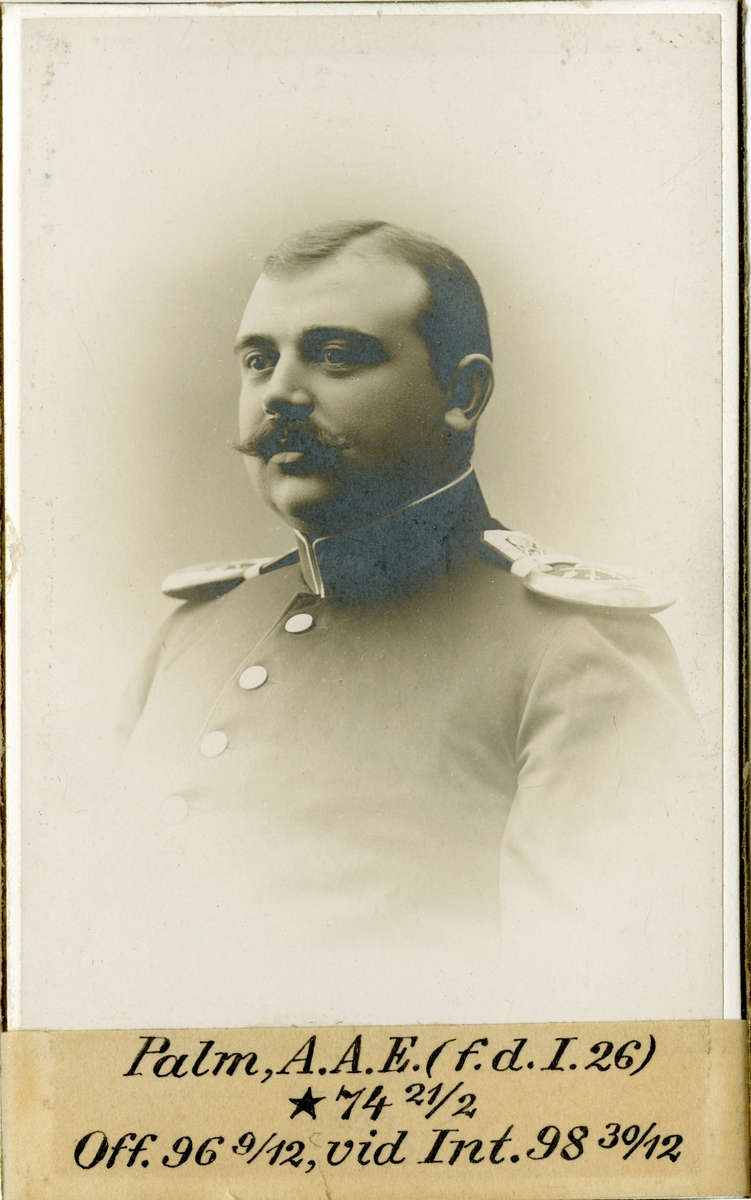 Porträtt av Anders Axel Engelbert Palm, officer vid Värmlands fältjägarekår I 26 och vid Intendenturkåren.