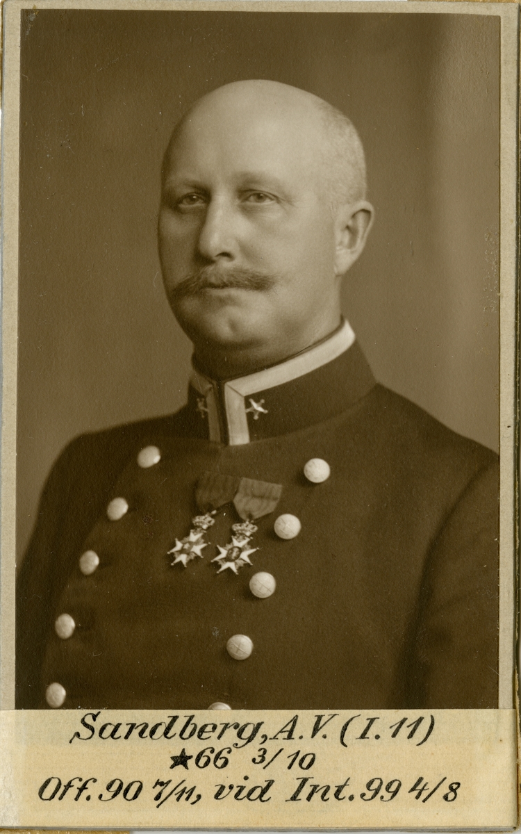 Porträtt av Axel Victor Sandberg, officer vid Kronobergs regemente I 11 och Intendenturkåren.