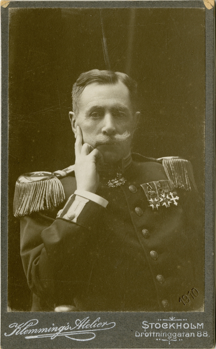 Porträtt av Gustaf Henrik Wilhelm Planting-Gyllenbåga, officer vid Bohusläns regemente I 15 och lärare vid Krigsskolan Karlberg.