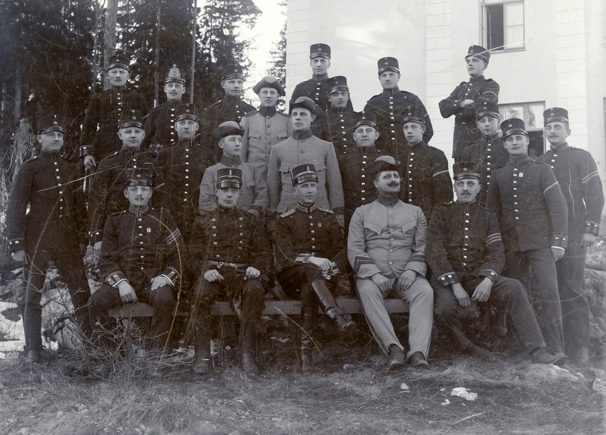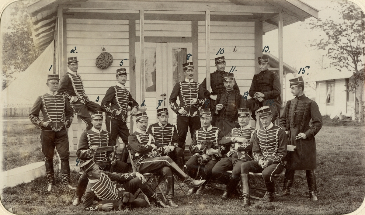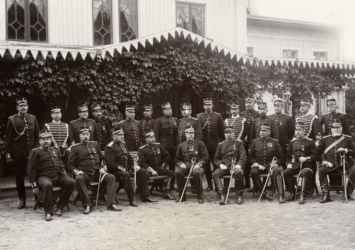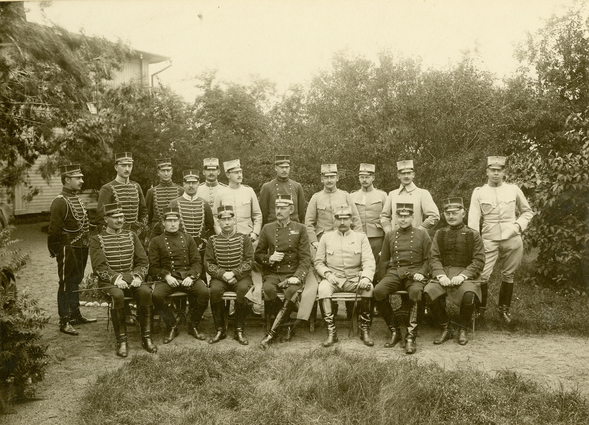 Grupporträtt av officerare och soldater vid Smålands husarregemente K 4.