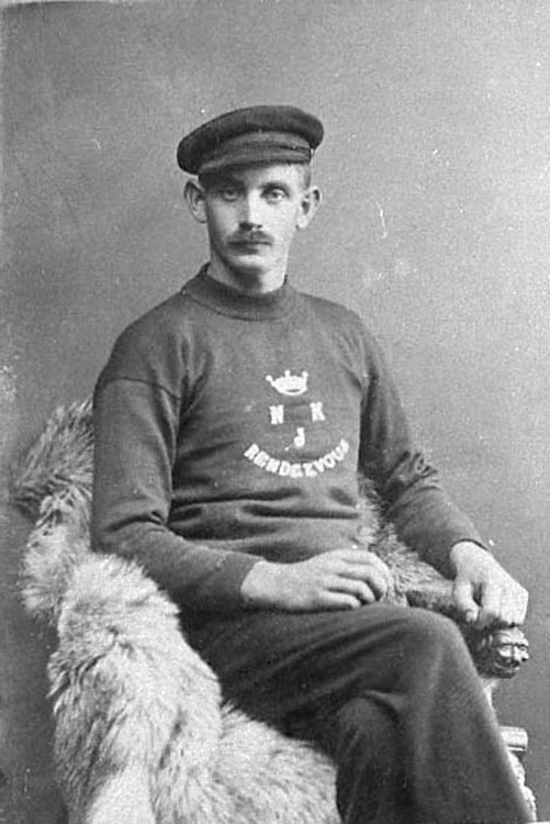Bildtext till kopian i fotoalbumet: "Albert Johansson f.1895 seglade år 1921 på fartyget Rendesvous tillsammans med bl.a Harald Magnusson f. 1895. Skeppare var då Erik Arvidsson, Marstrand".