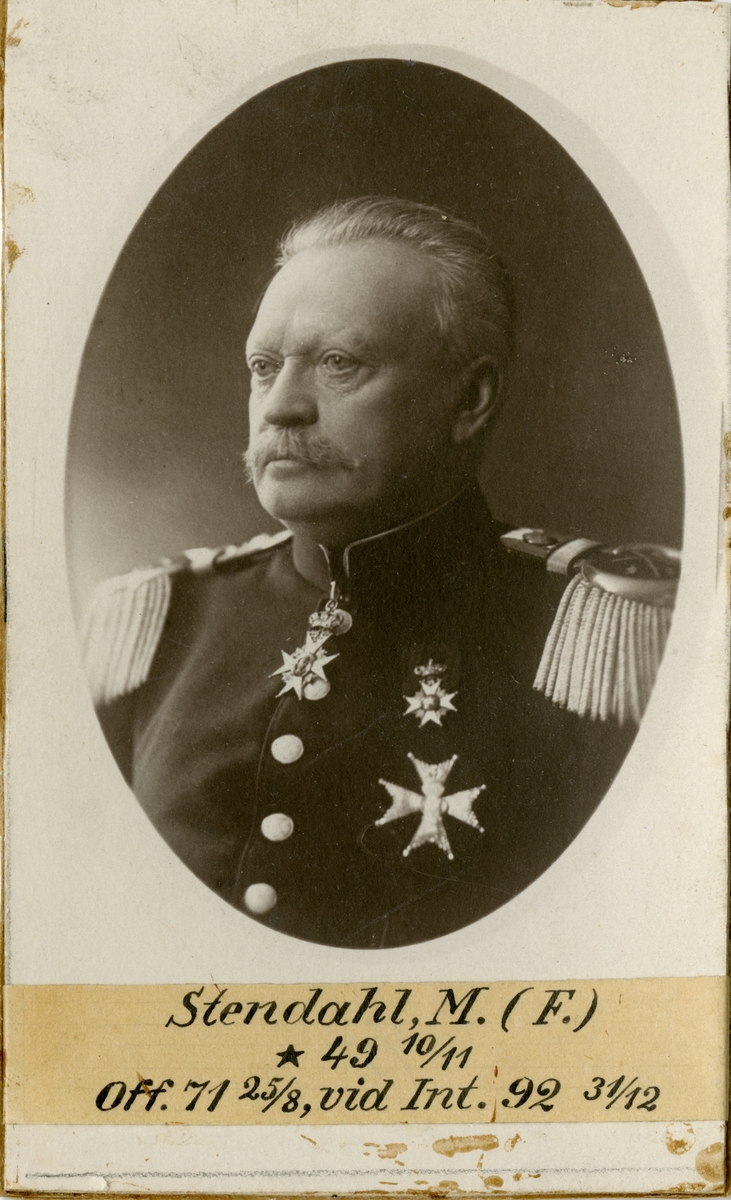 Porträtt av Magnus Stendahl, officer vid Fortifikationen och Intendenturkåren.