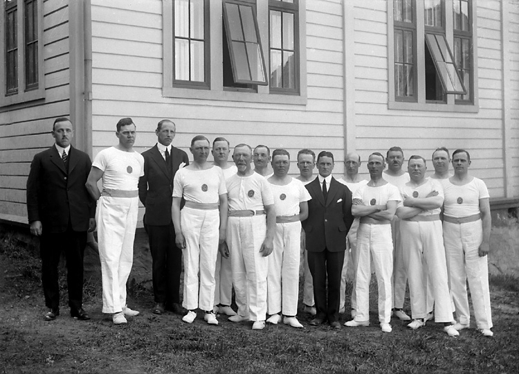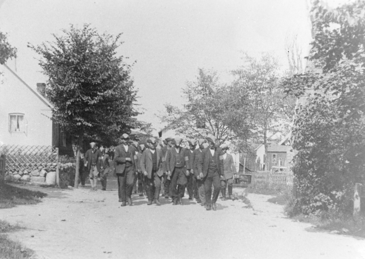 Enligt fotografens notering: "Kurt Gillberg, den som står i mitten, Lyckorna".
