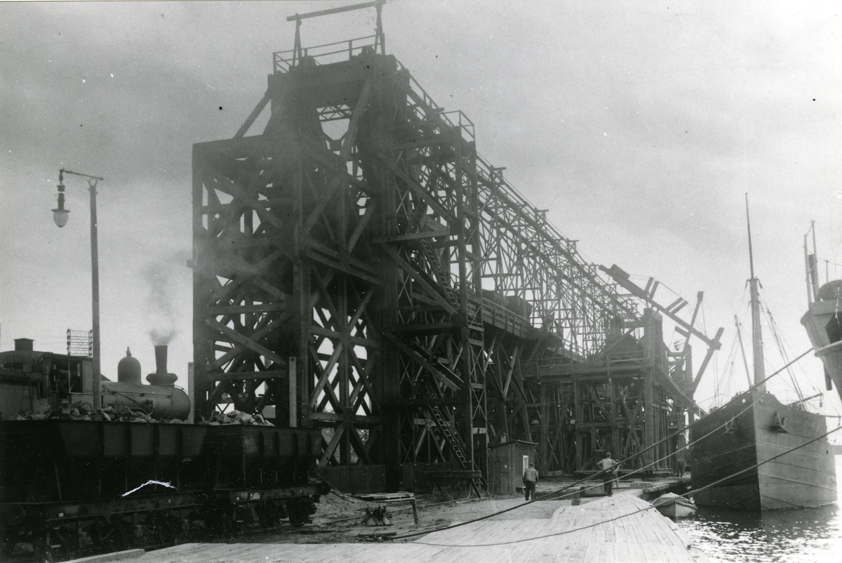 Gamla malmlastningskajen, jan. 1914. Foto taget strax före rivningen av malmsprutan.