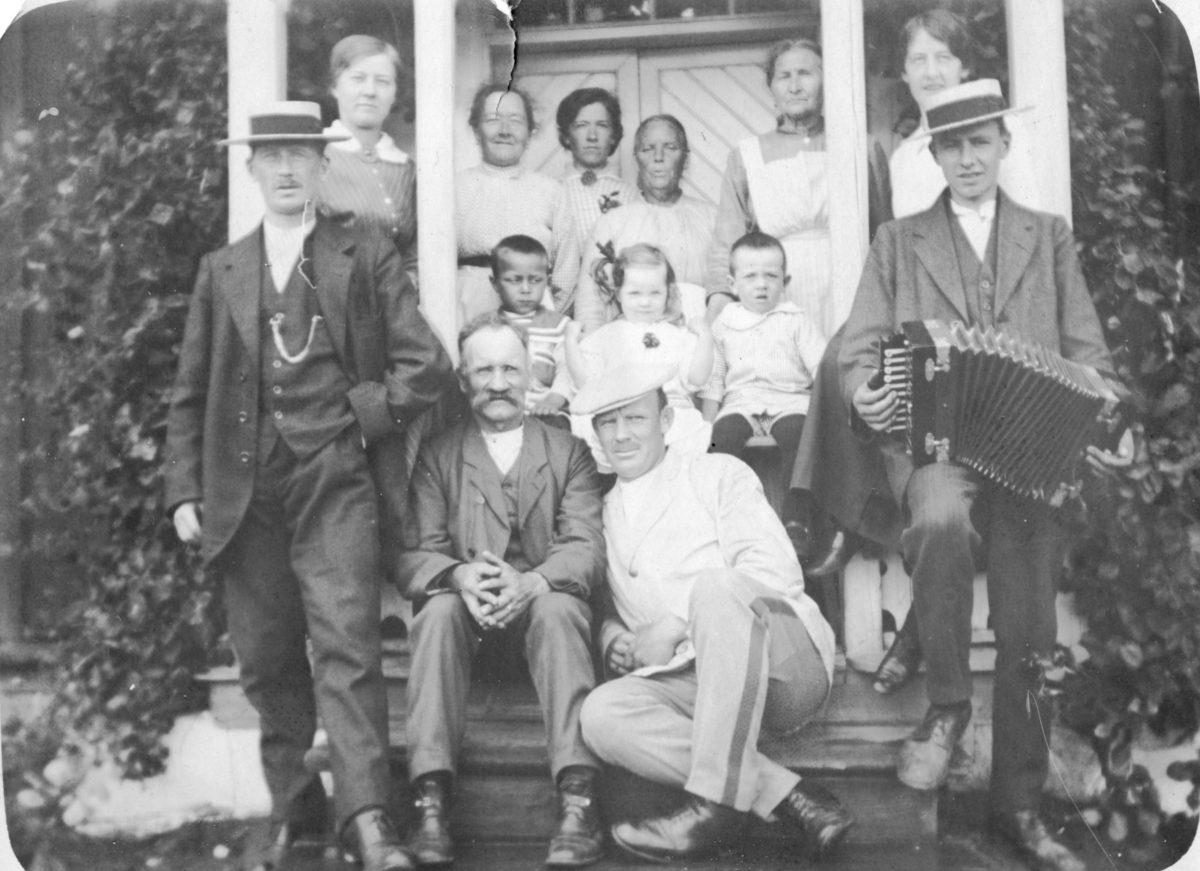 Troligen en familj samlad på en veranda.
