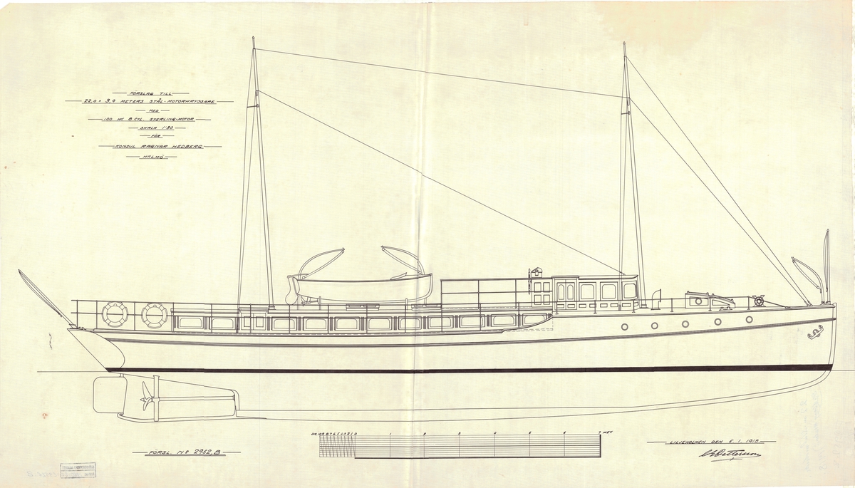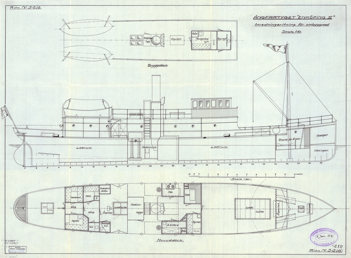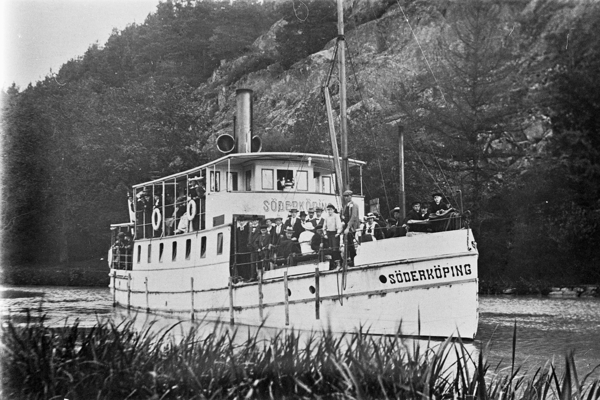 Vy av Sundsvalls hamn 1918. Lastade vedskutor på väg till Stockholm.