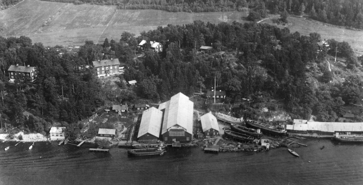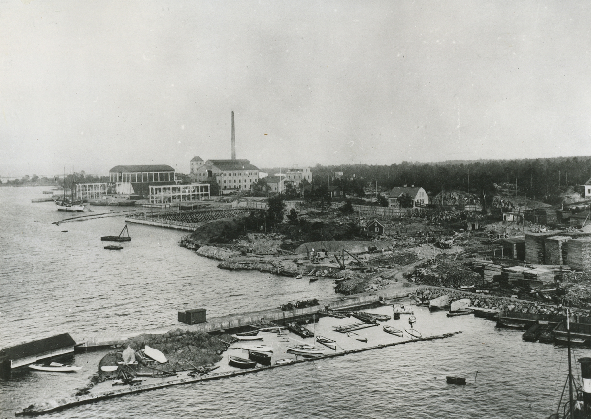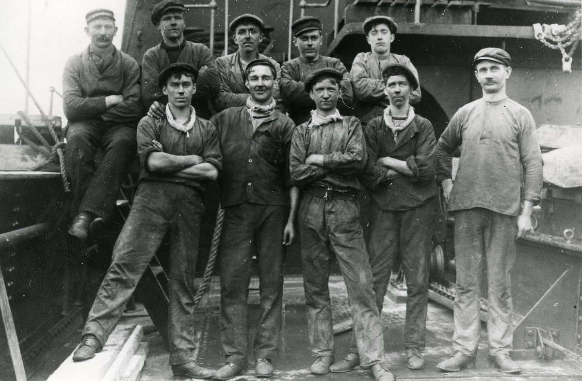 Arbetare i Norrbyskär 1918. Andre man fr.v. nedre raden är Gunnar Berglund, en av de få Norrbyskärspojkar som gick till sjöss.
