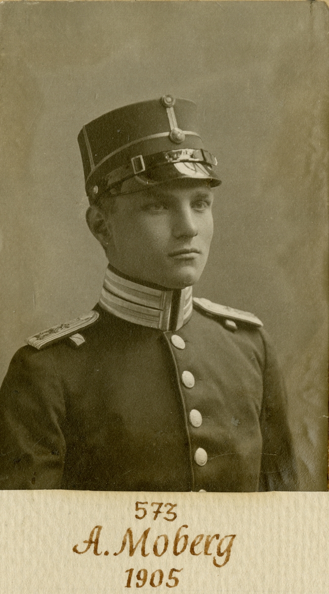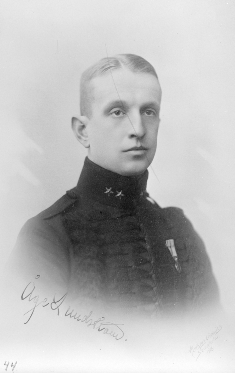 Porträtt av militära flygpionjären, Åge Lundström från Livregementets dragoner. Porträttet är signerat av Lundström.