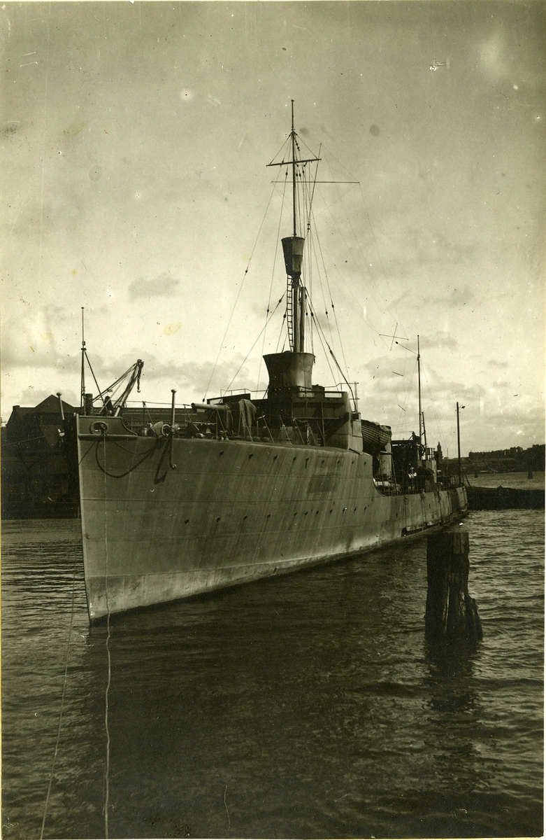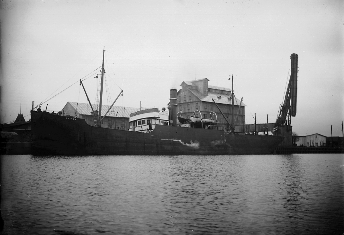 Lastångfartyget LILLY av Göteborg i Åhus hamn den 11 december 1918.