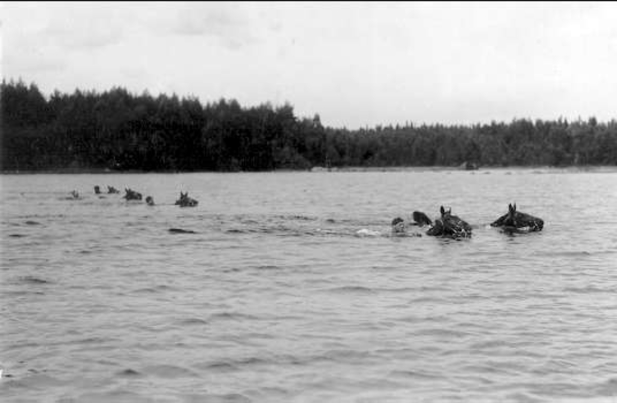 2.skv:s patrull övergår Vristulven, ptrlchef löjtn Sven Littorin med hästarna Slender och Häxan.