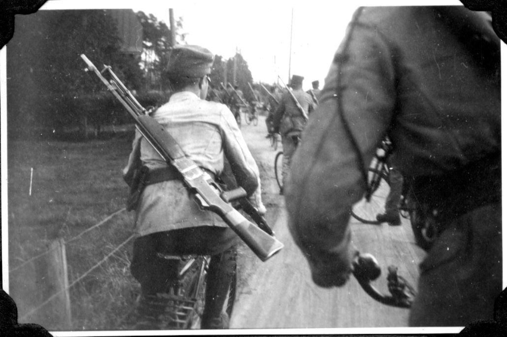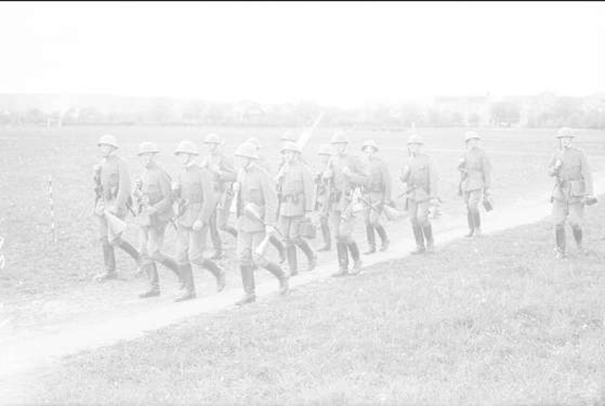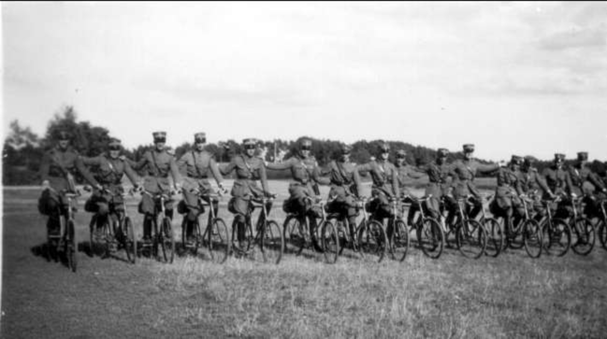 Regementets återkomst från höstmanövern 1934. Förbimarsch för general E Testorp.