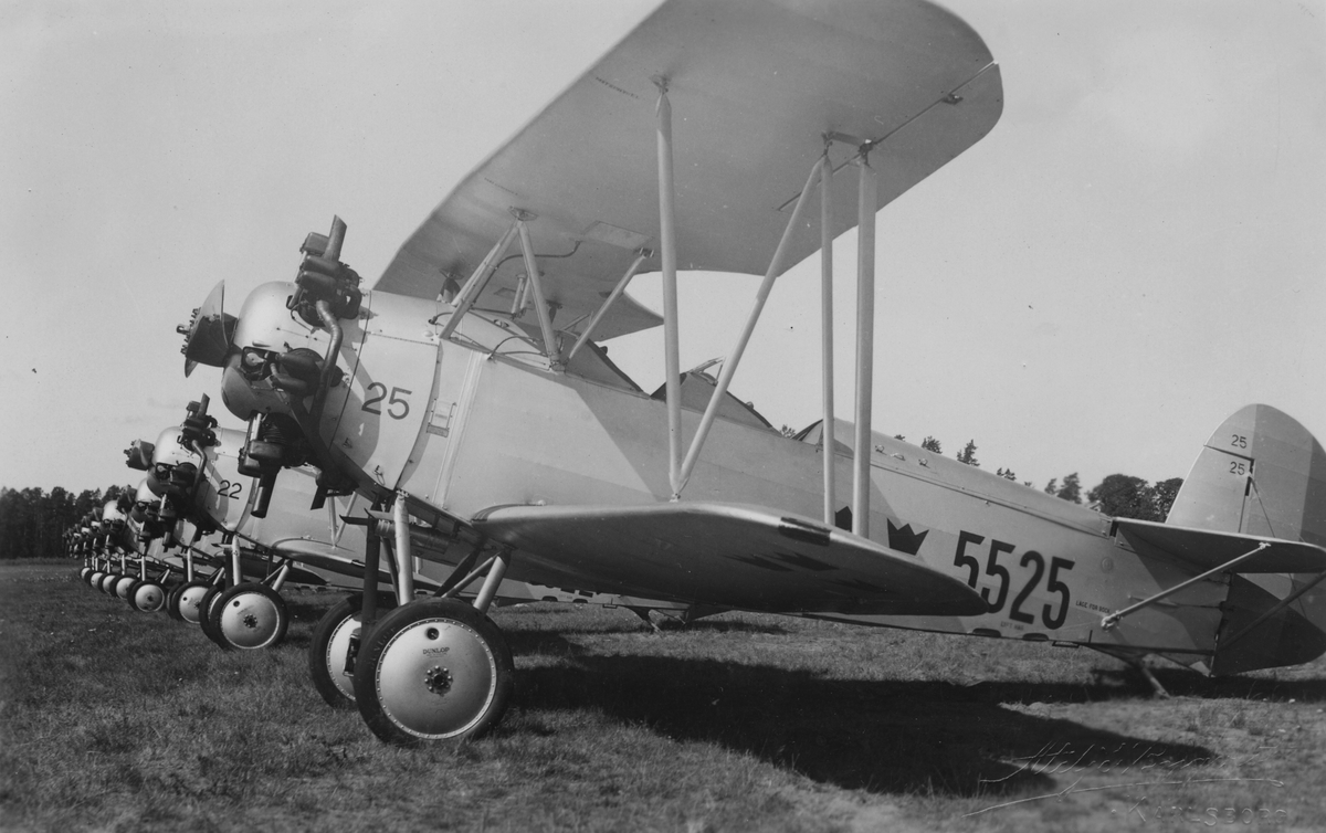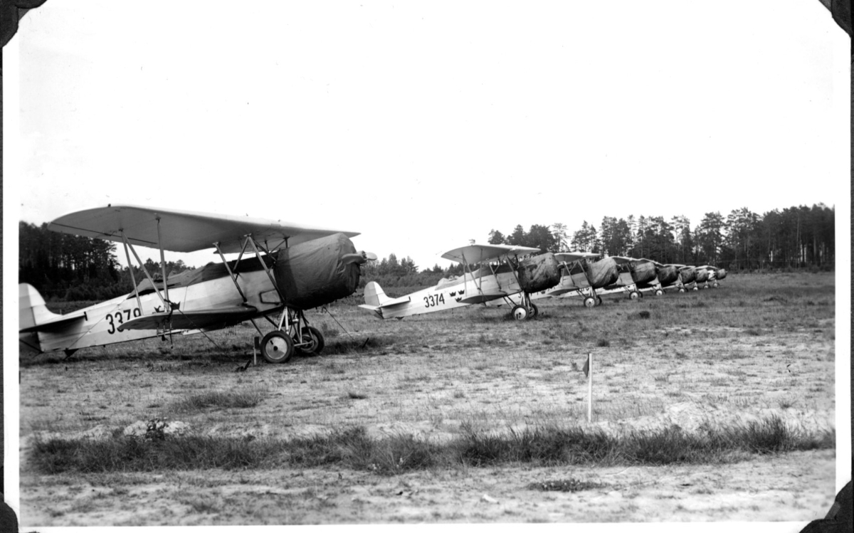 Karlsborg 1934. Flygplan Fokker S6 från F3 på Karlsborgs flygfält.
