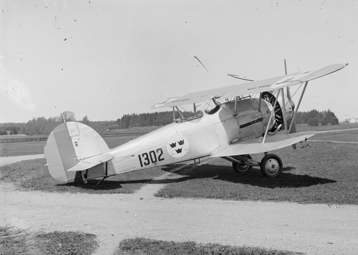 Karlsborg 1934. 1. Divisionen. Flygplan Fokker S6 på Karlsborgs flygfält.