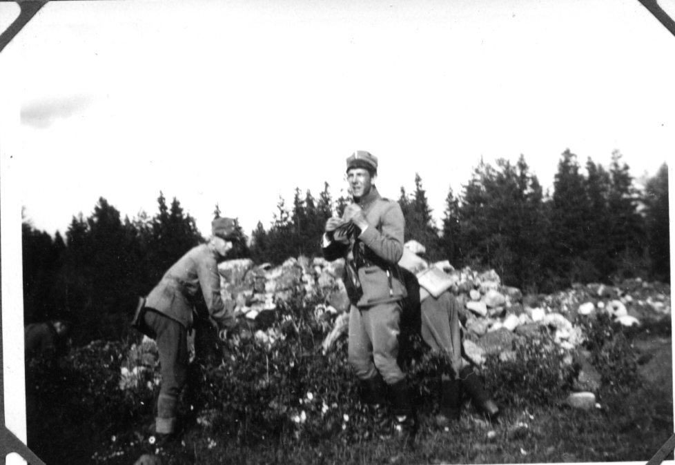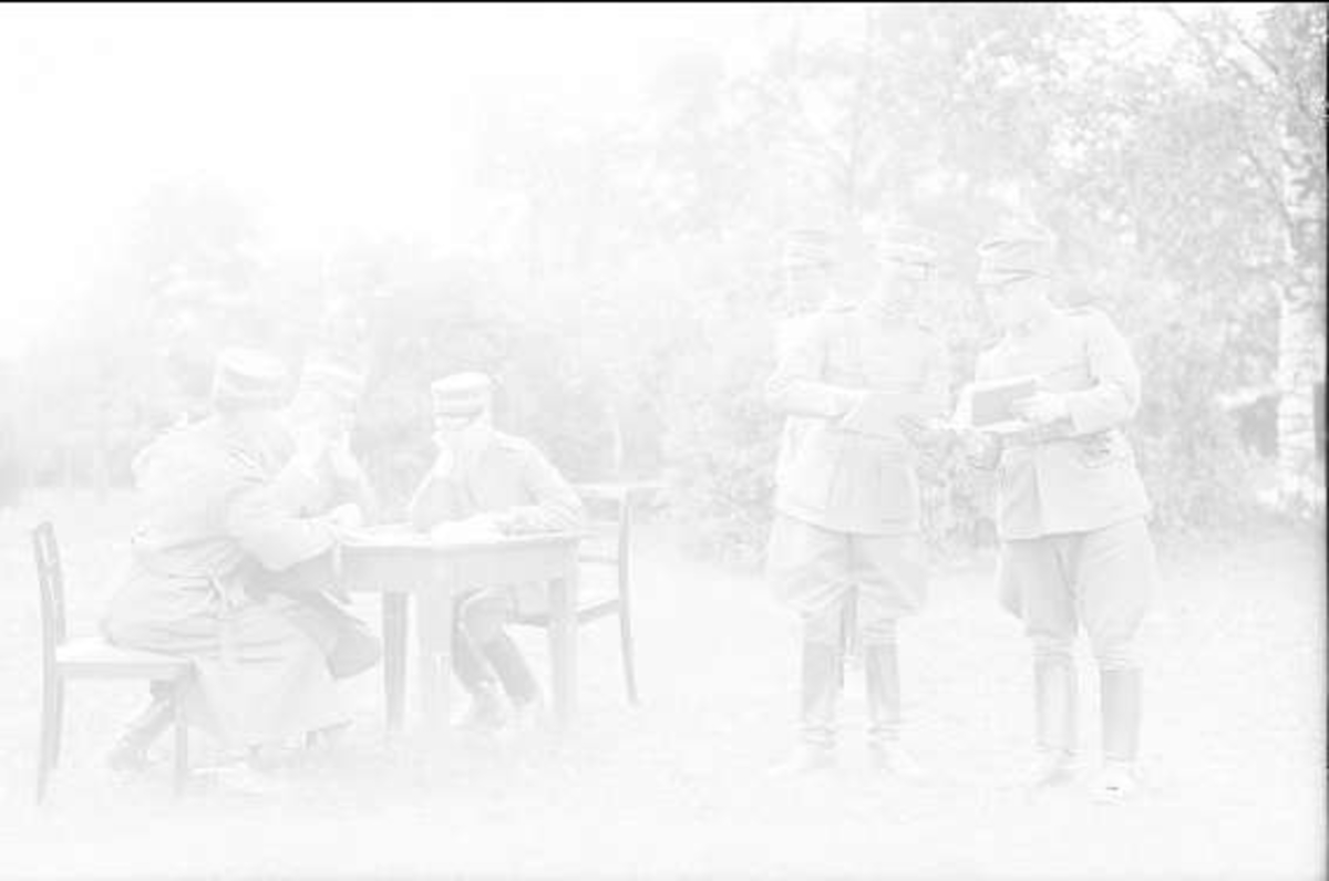 Sammanfattning av kritik efter övning. Från vänster: övlt. Henry Peyron K 3, general Göran Gyllenstierna kavalleriinspektör, övlt. Åke Hök stabsch. Kavalleriinspektionen, ryttm. Harald Strömfelt K 3 (sko