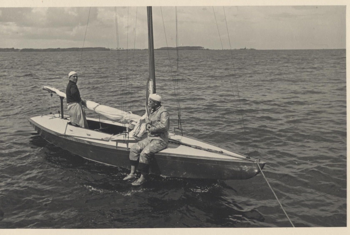 "'Havsörnen' /Sea Eagle/ designed by Tore Holm, sailed and owned by Sven Salén, was a superior winner of the race around Gotland 1937. Nr. 29 is another Swedish yacht, 'S'Marianne' av Torö, belonging to Mr. L