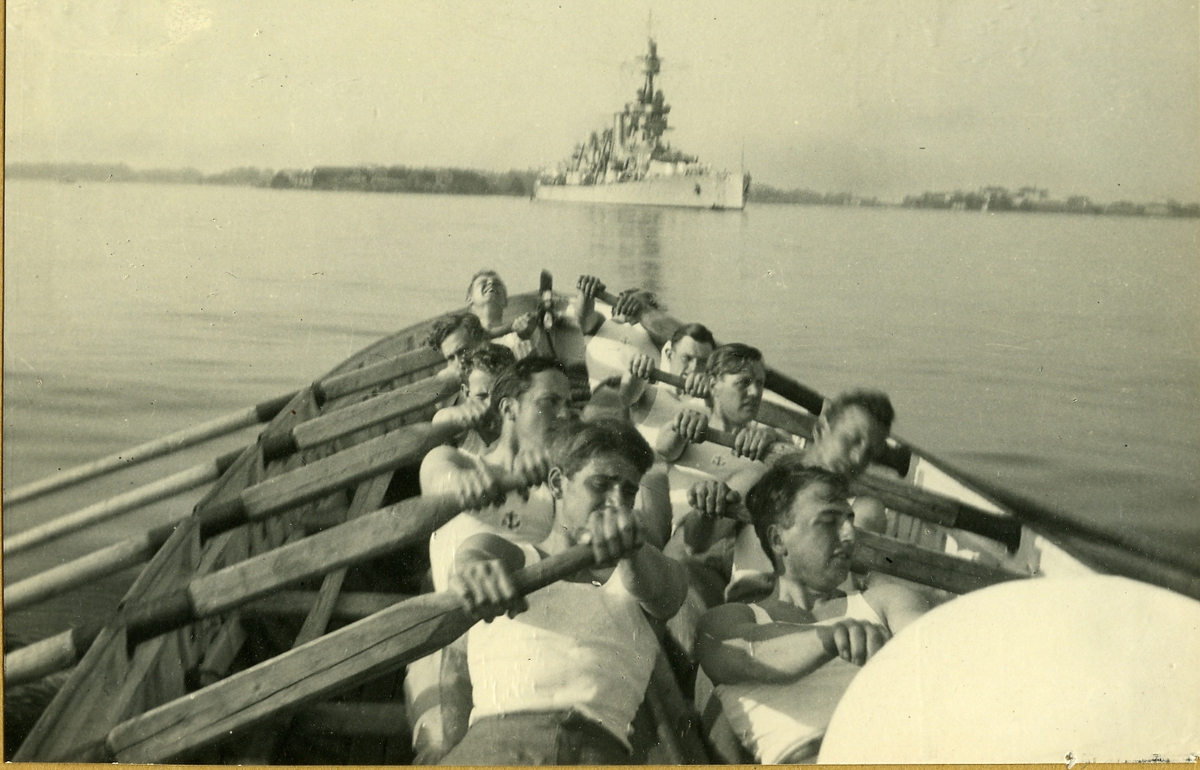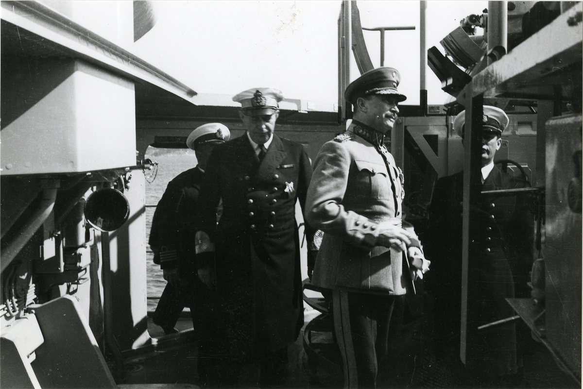 Fältmarsalken, Friherre Carl Gustav Mannerheim, besöker det svenska flaggskeppet vid besök i Helsingfors sommaren 1938.