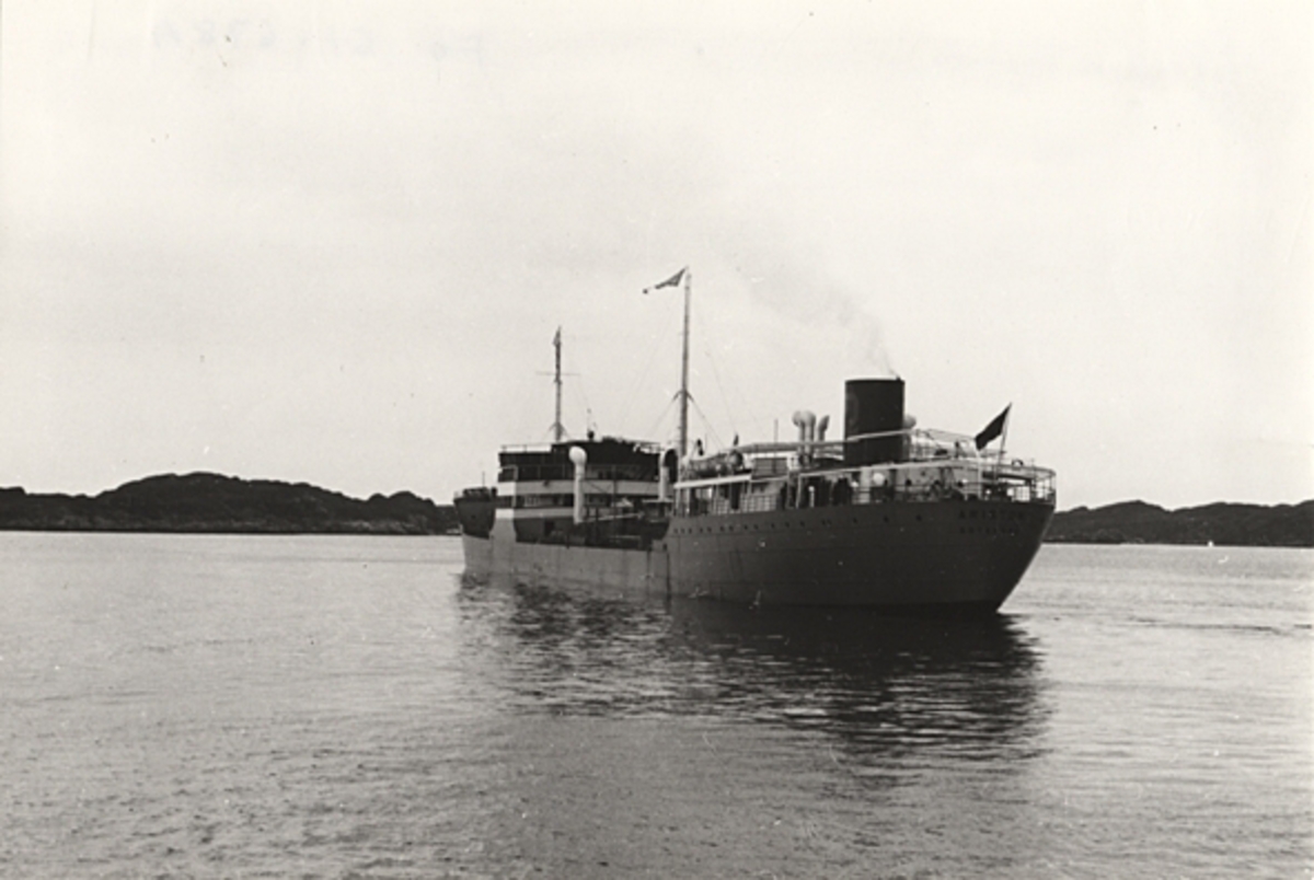 Tankern M/S ARISTON vid provturen 9/6-38 i Göteborgs skärgård. Bilden ur album sänt till Hugo Schuberts 75-årsdag från direktör Hugo Hammar, Götaverken.