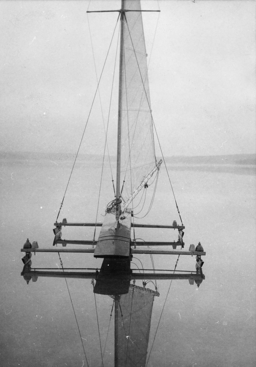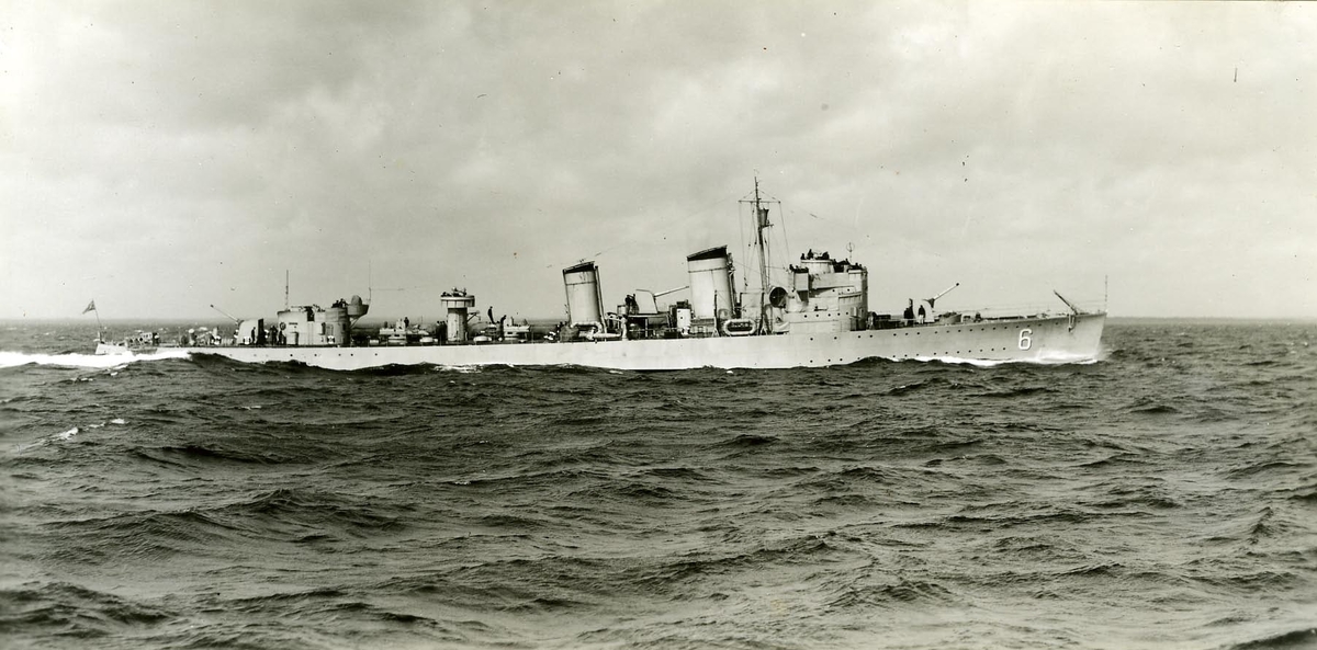 Havskryssaren HAVSÖRNEN I med varvspersonal på Holms Yachtvarv i Gamleby år 1938.