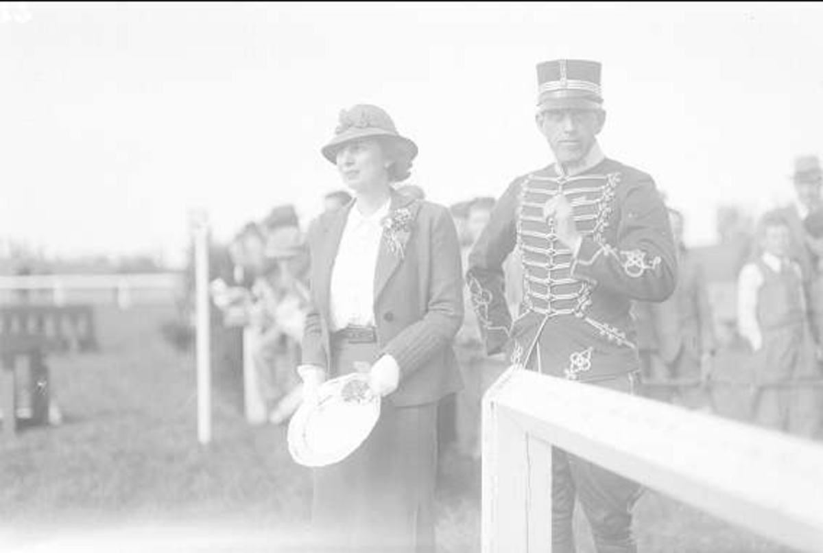 Skövde fältrittklubbs vårtävlingar 1938. Prisutdelning: Generalskan Tyra af Edholm, ryttm. Peter von Essen.