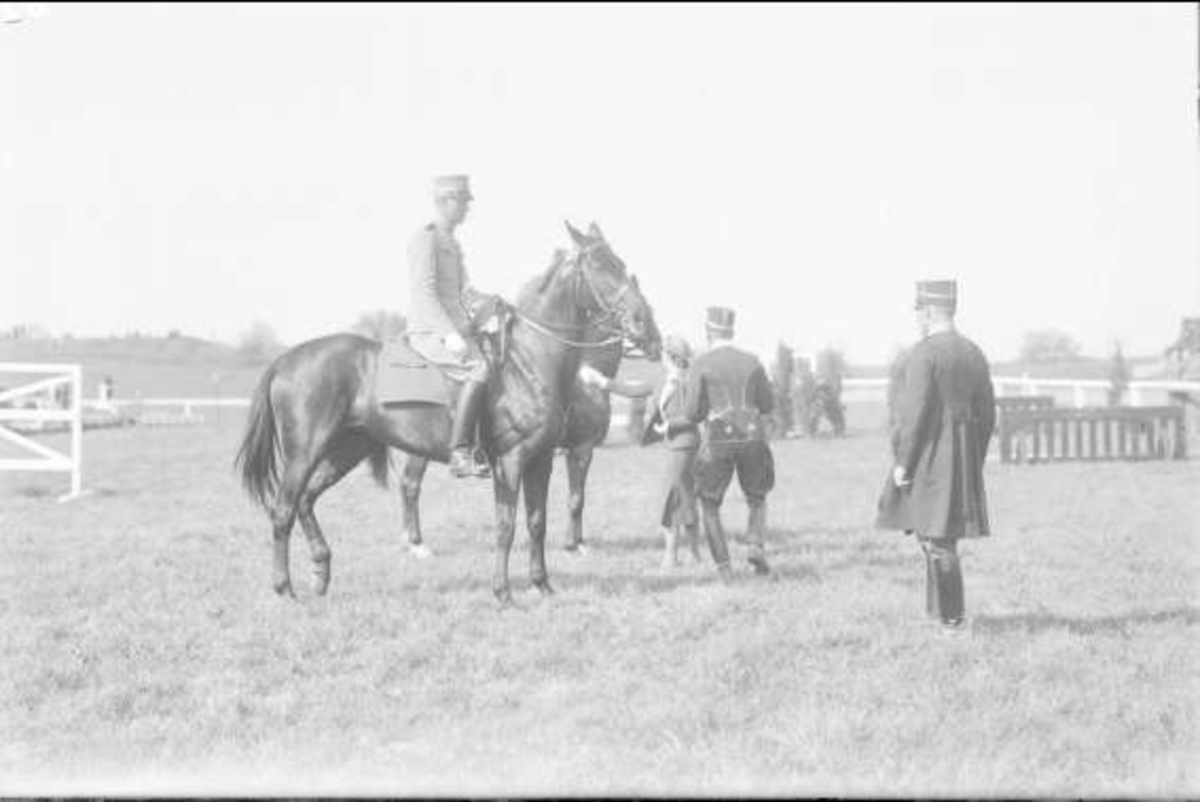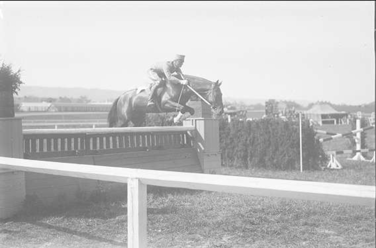 Skövde fältrittklubbs vårtävlingar 1938. Prisutdelning: Löjtn. Melcher Wernstedt, med ryggen mot kameran.
