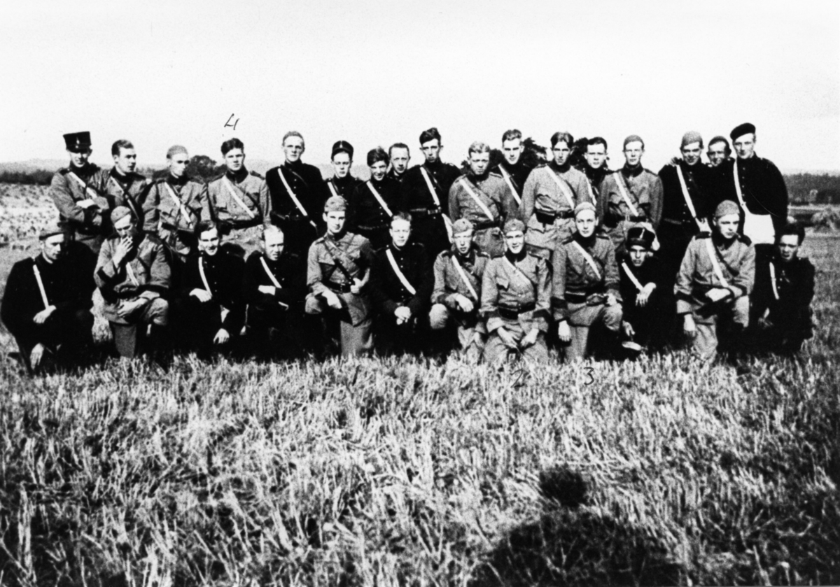 1938. F1 Västerås. Korpral Abrahamsson i flygplan P1 (Sparmanjagare) med stabens flygavdelnings märkning.