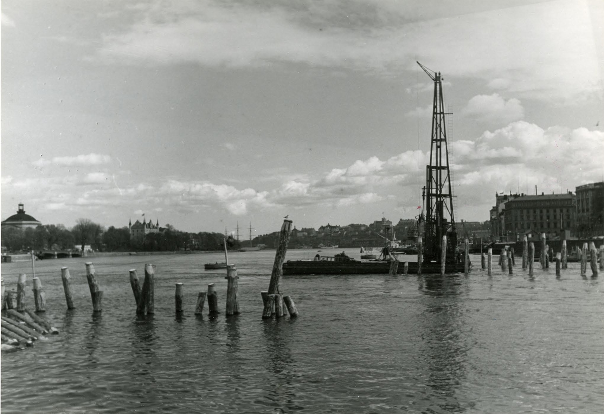 Närmast Skeppsholmen: Ubåtsdepåfartyget Patricia med 6 ubåtar.