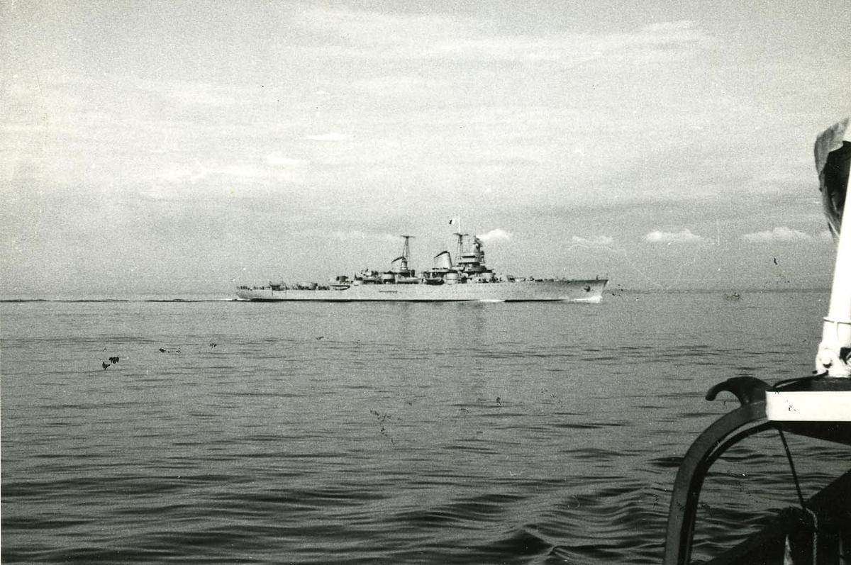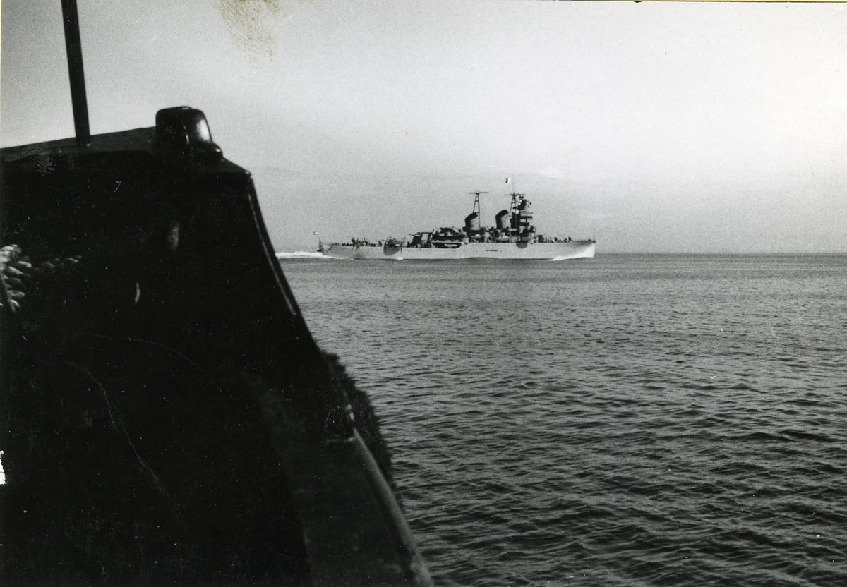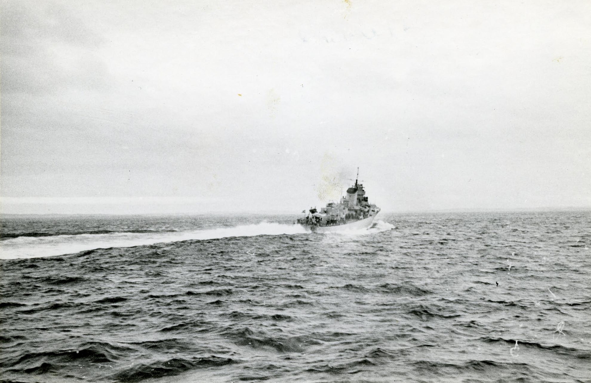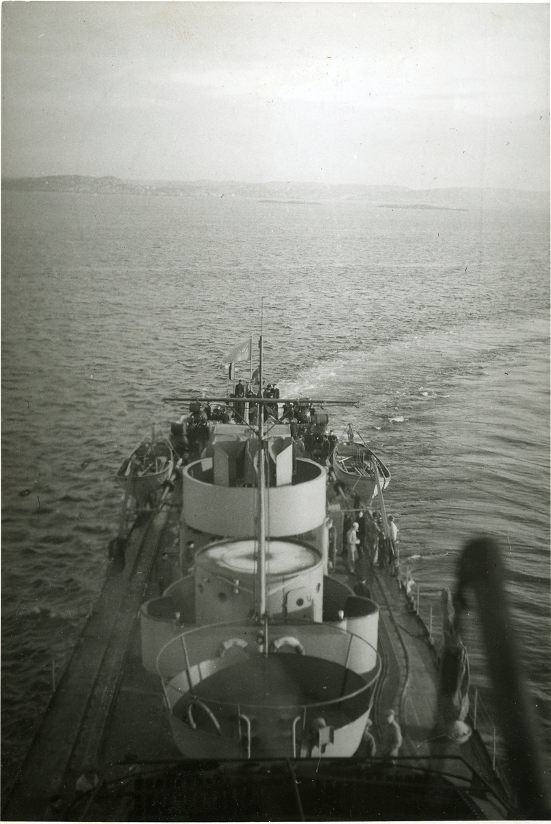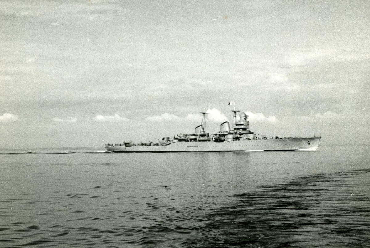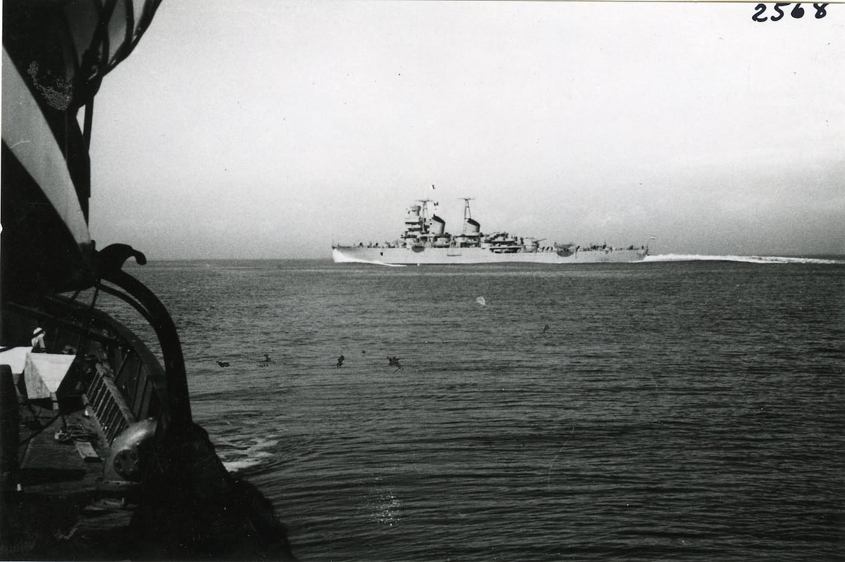 Kryssaren Tre Kronor. Fullfartsprov utanför Vinga den 22 juli 1947.
