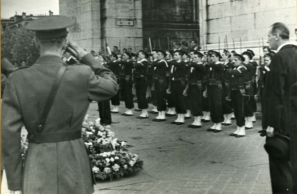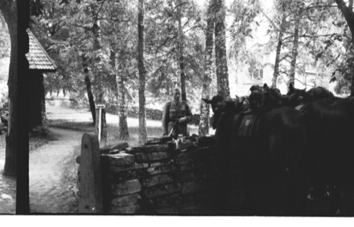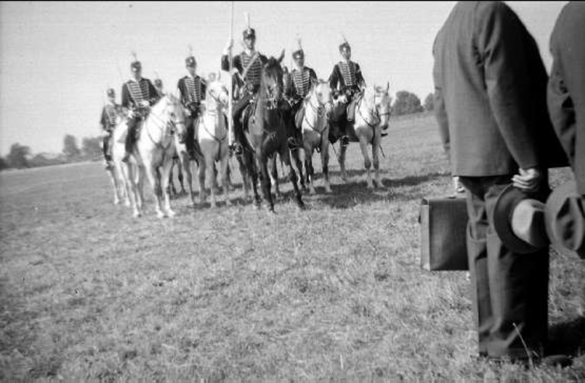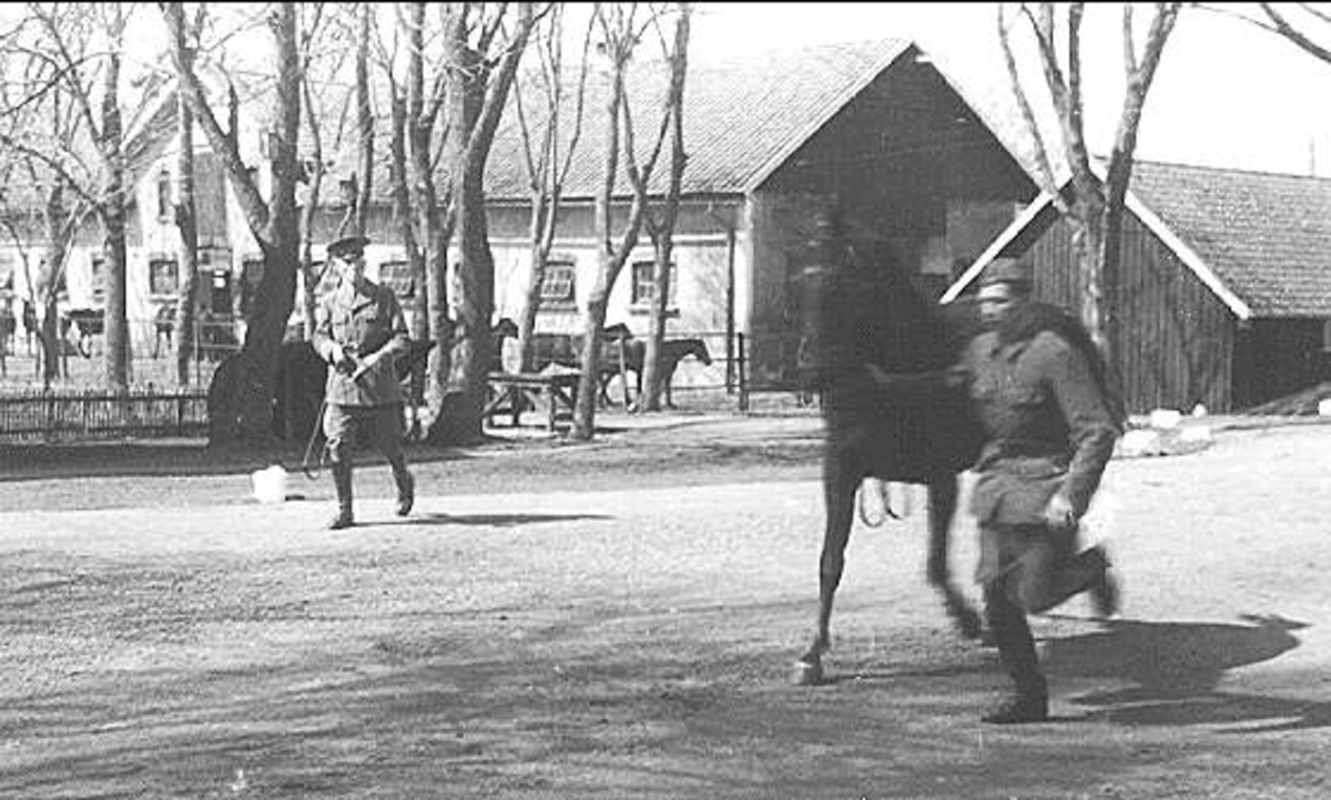 Sista mötet med hästen. Prins Eugens dödsdag firas. Sekundchef Gösta Bergenstråle, standarförare Magnus Fornell, stabschef Sten Lewenhaupt på väg att lämna förbandet.
