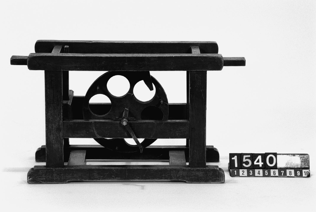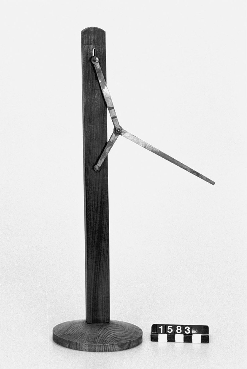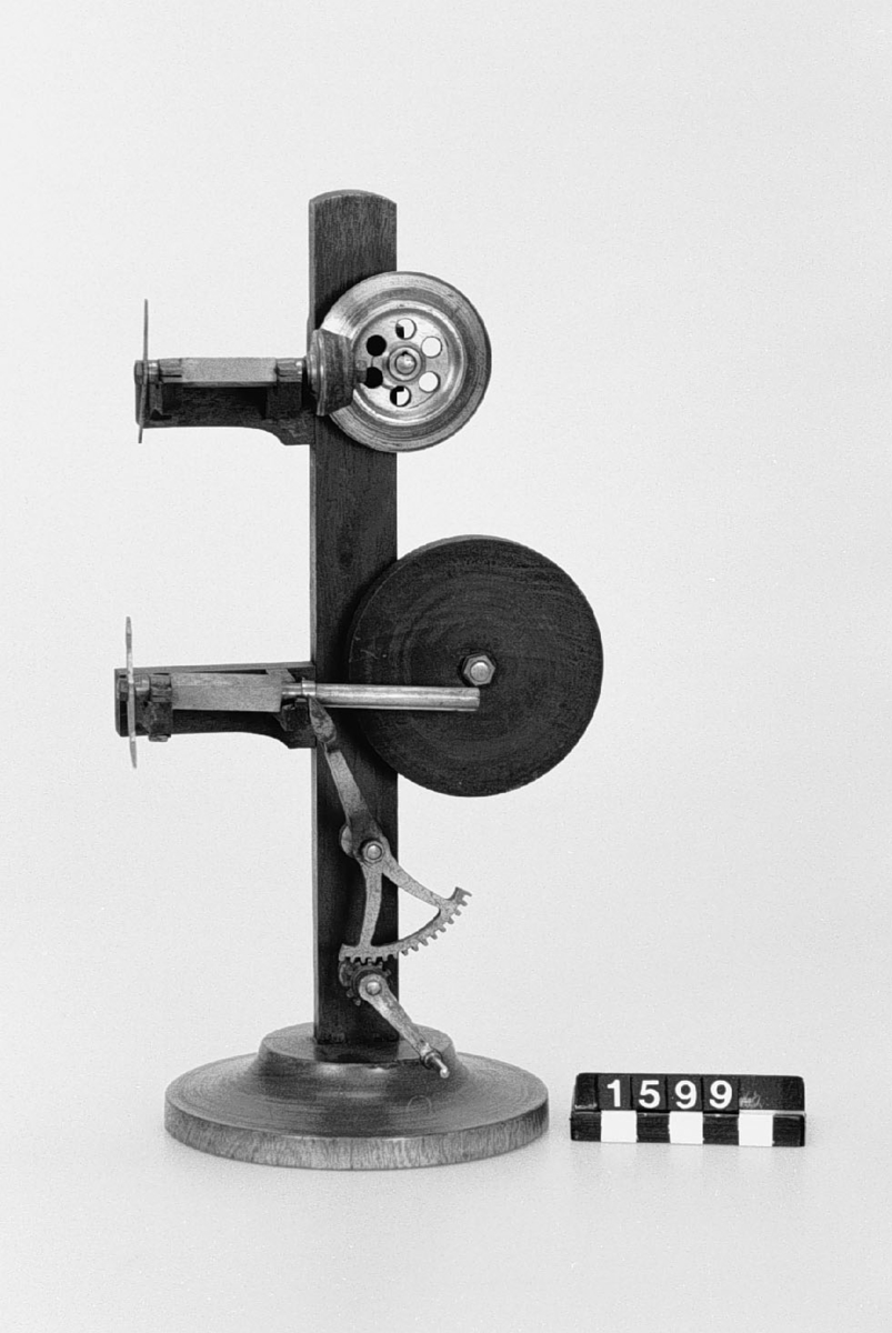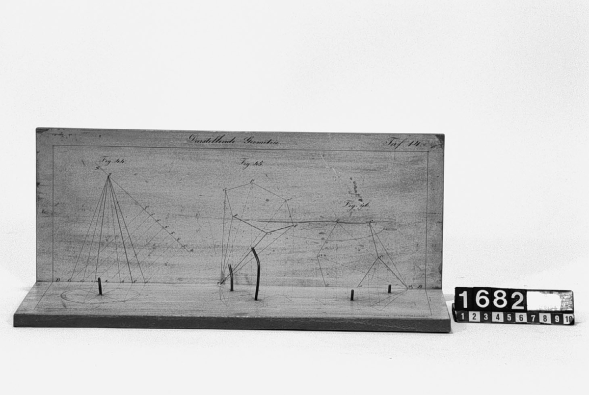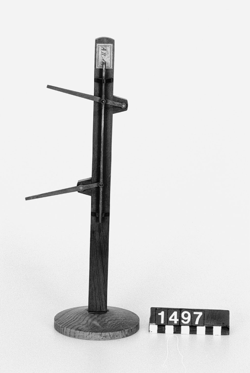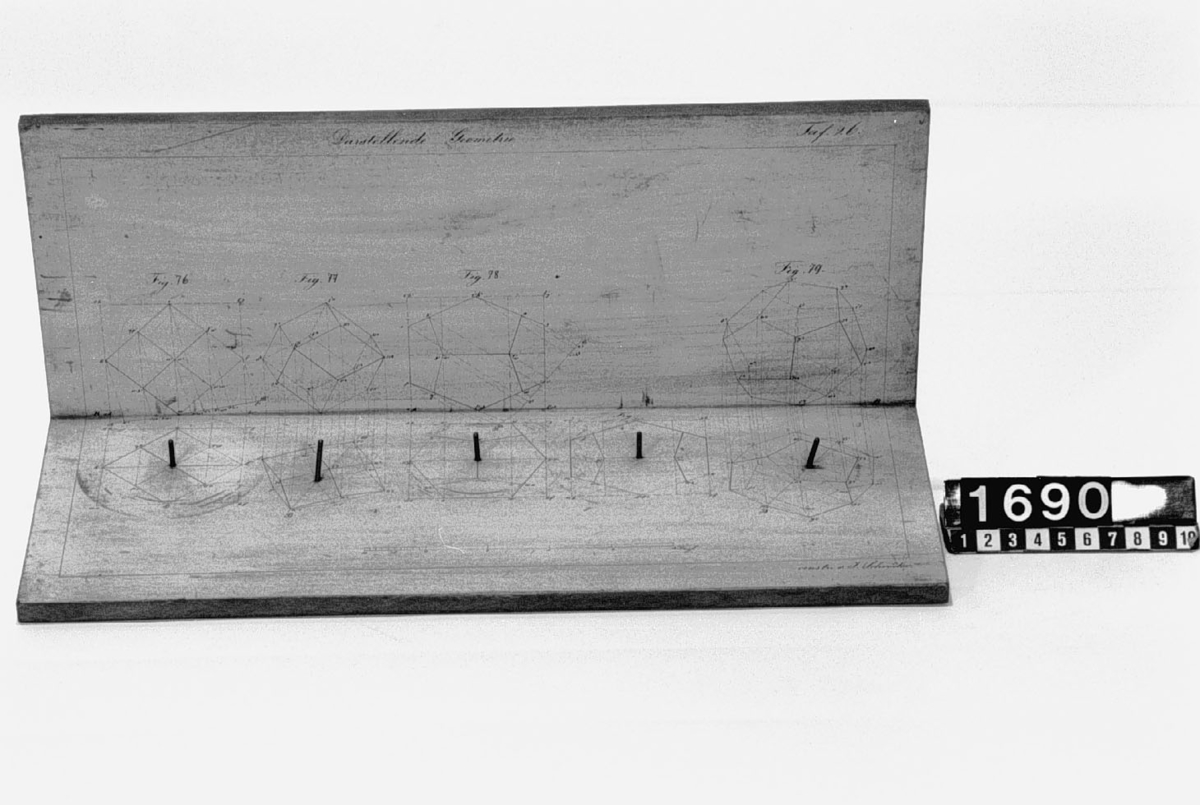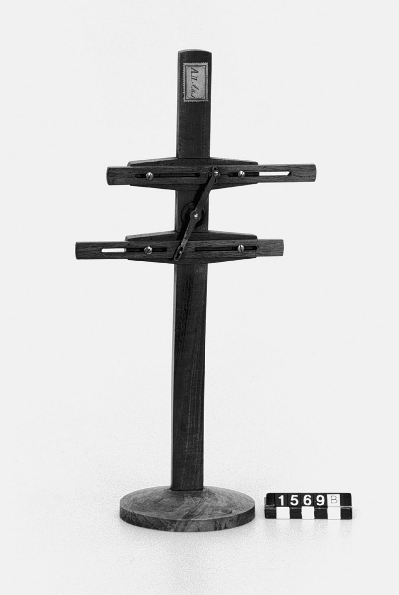. Wooden rack with space to hold up to three telescopes and a wooden shelf above. The rack would have been attached to a wall or partition.