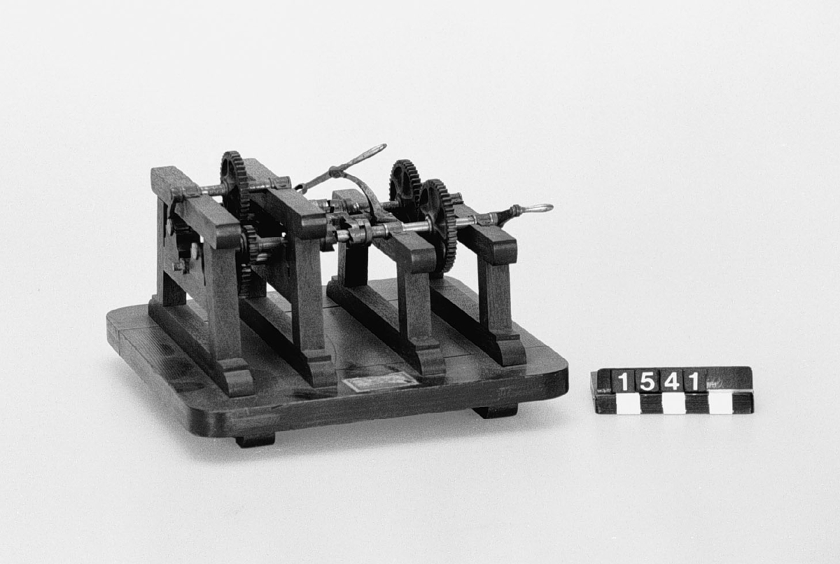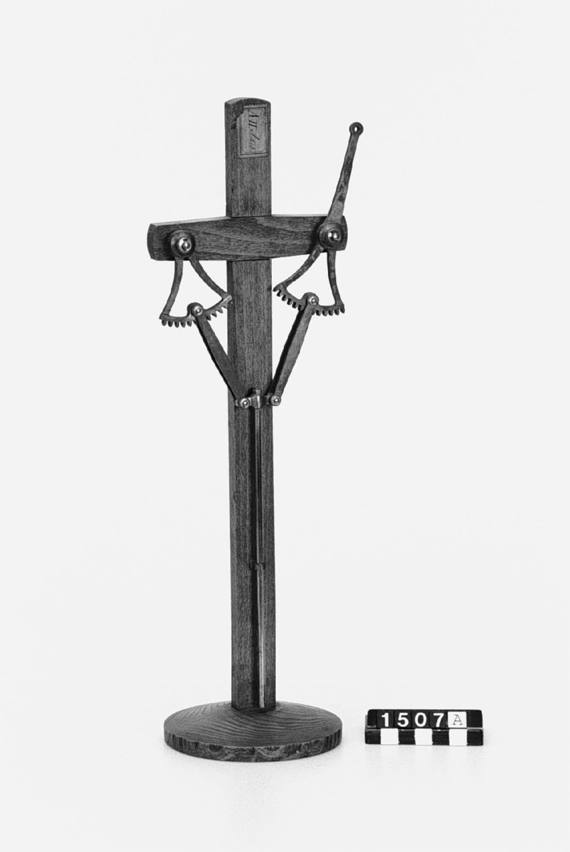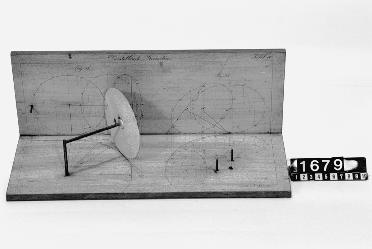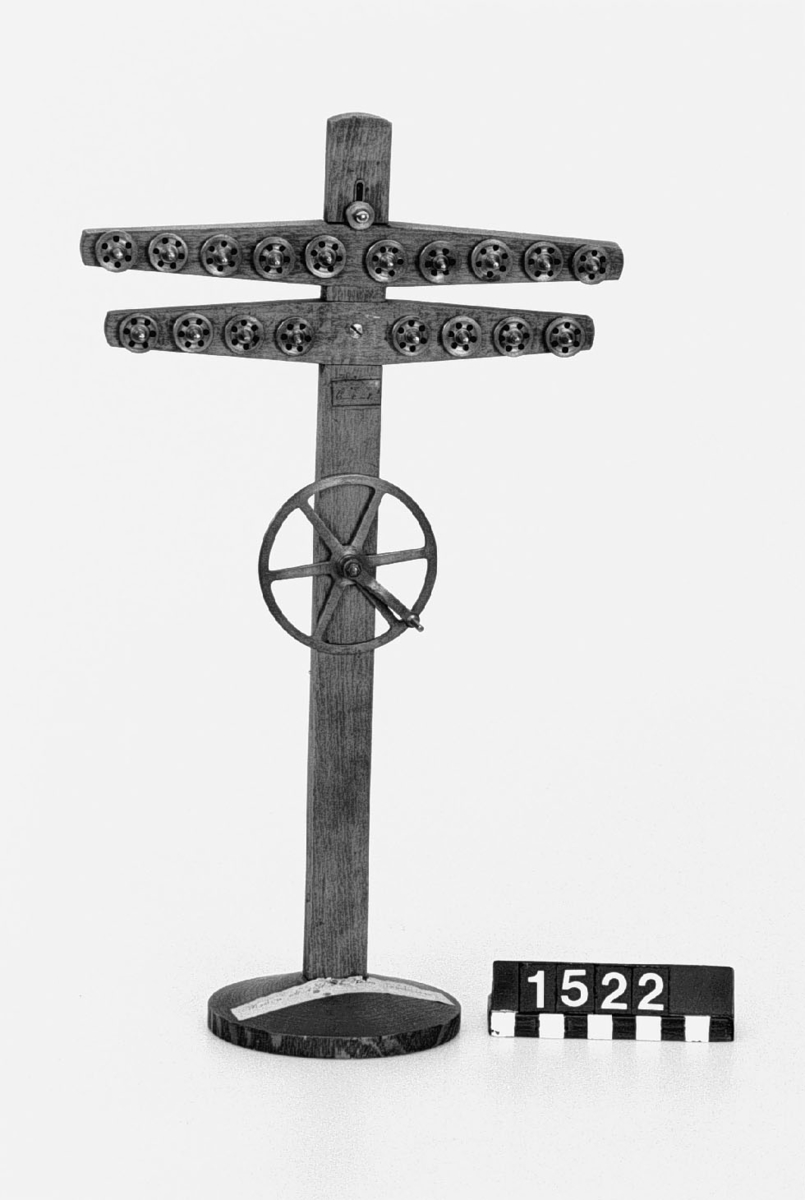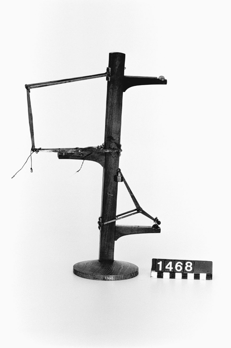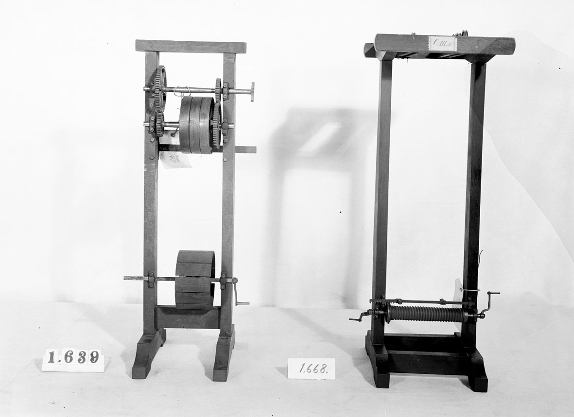 . Wooden rack with space to hold up to three telescopes and a wooden shelf above. The rack would have been attached to a wall or partition.