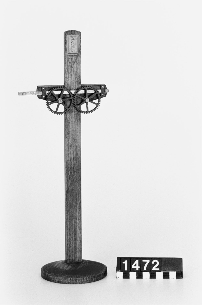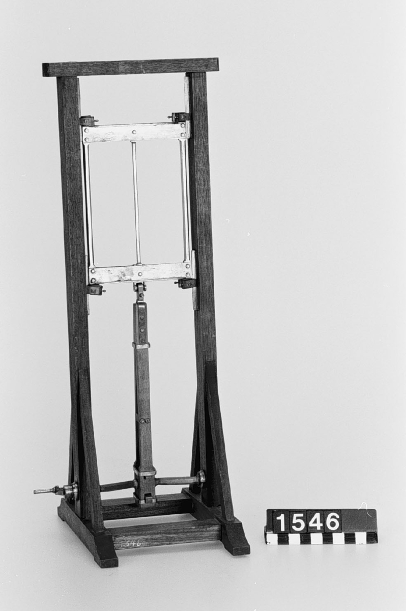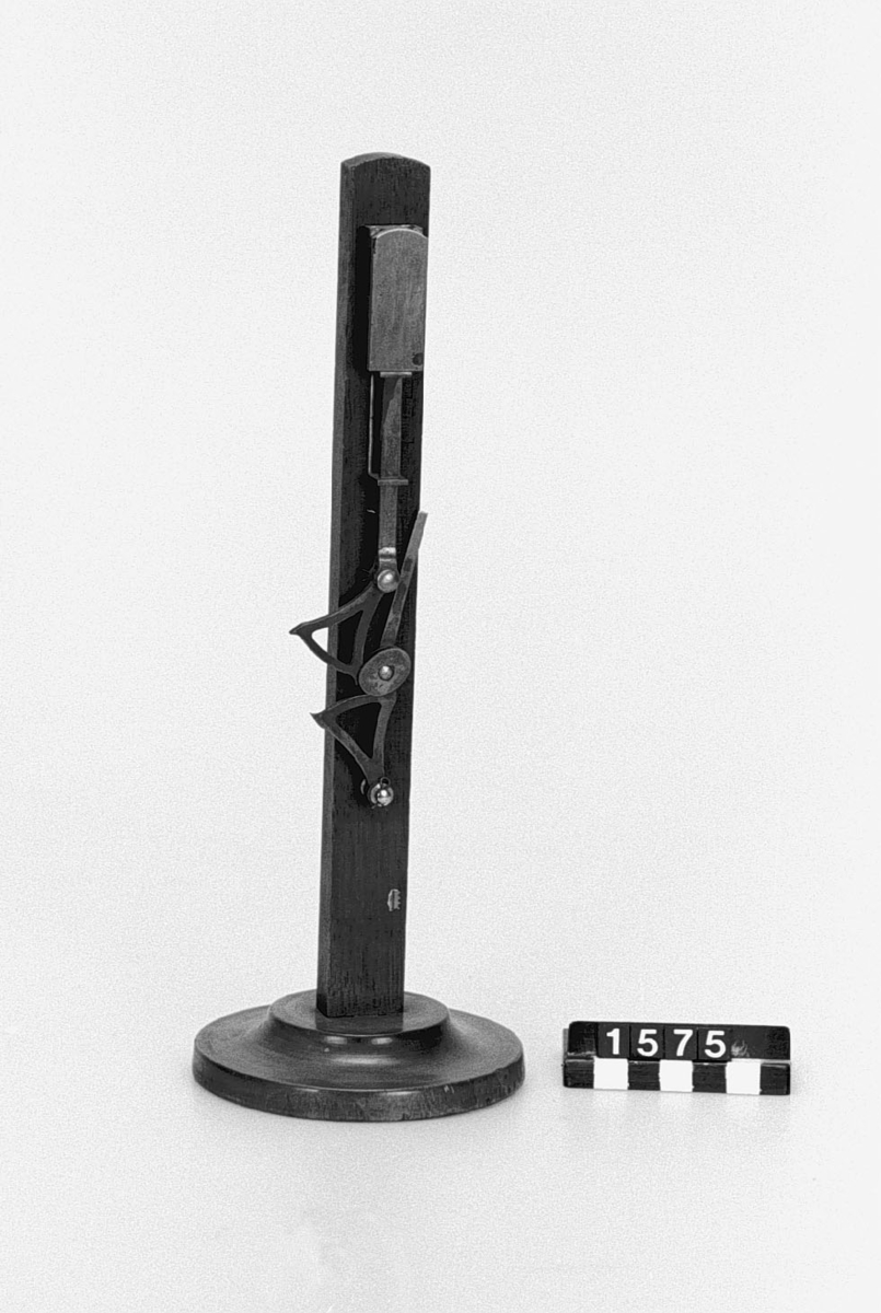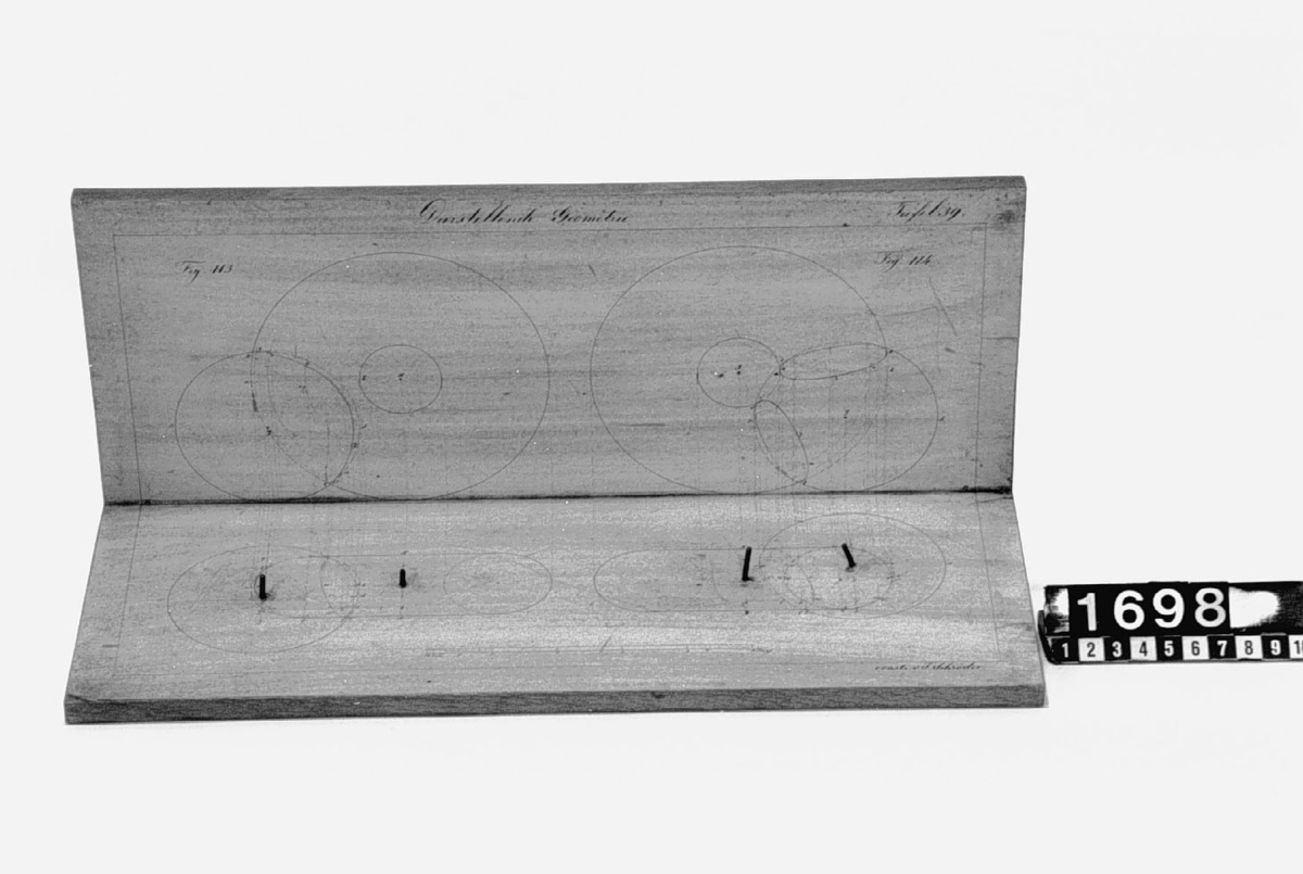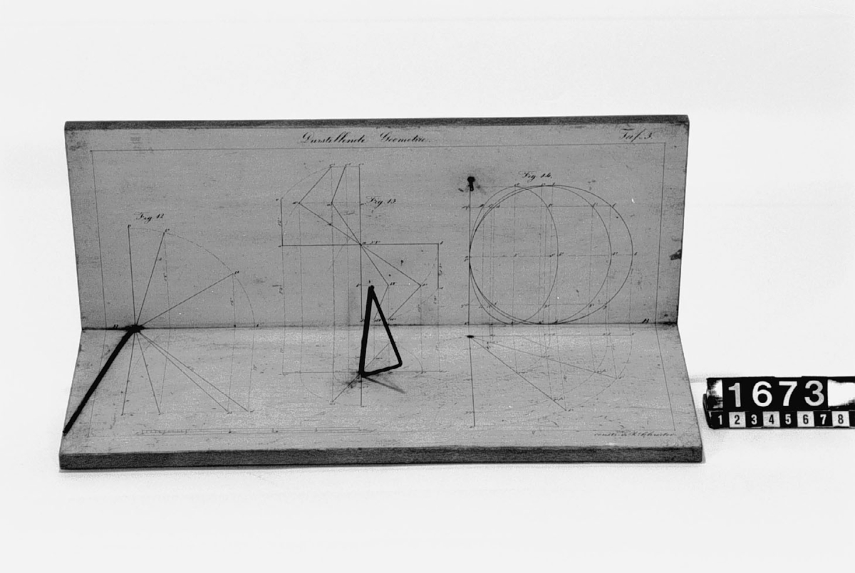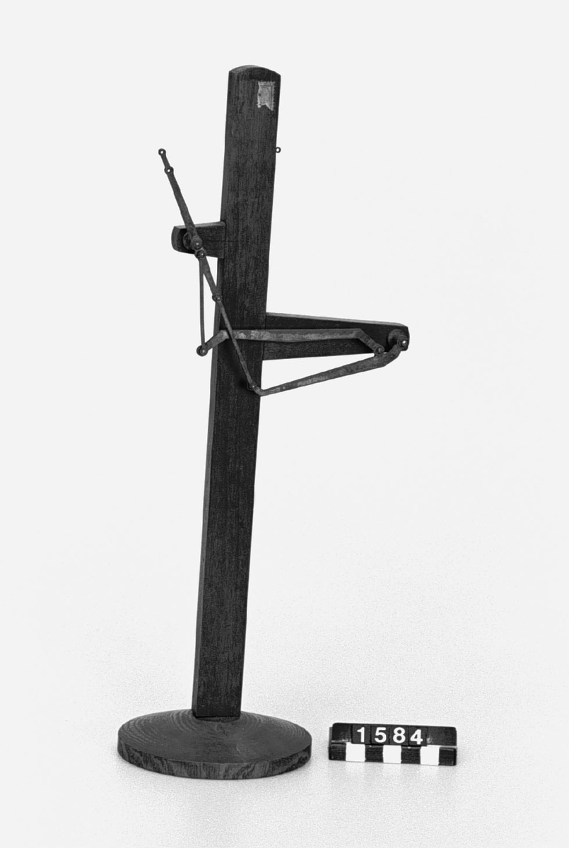 . Wooden rack with space to hold up to three telescopes and a wooden shelf above. The rack would have been attached to a wall or partition.