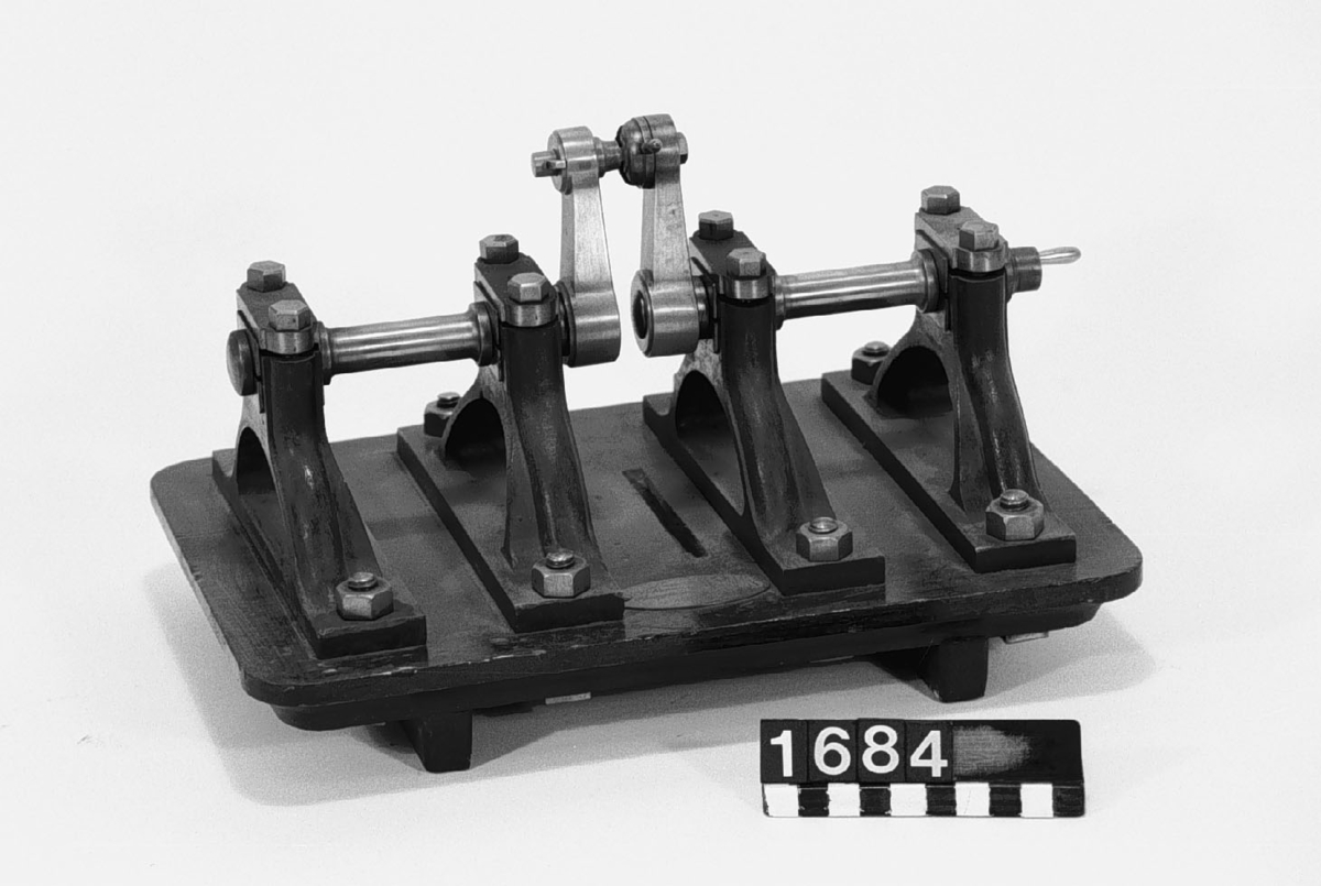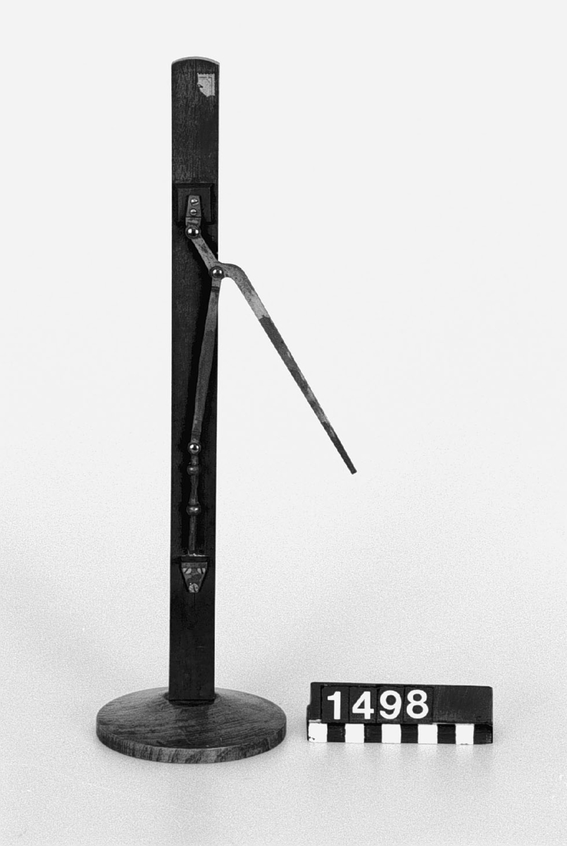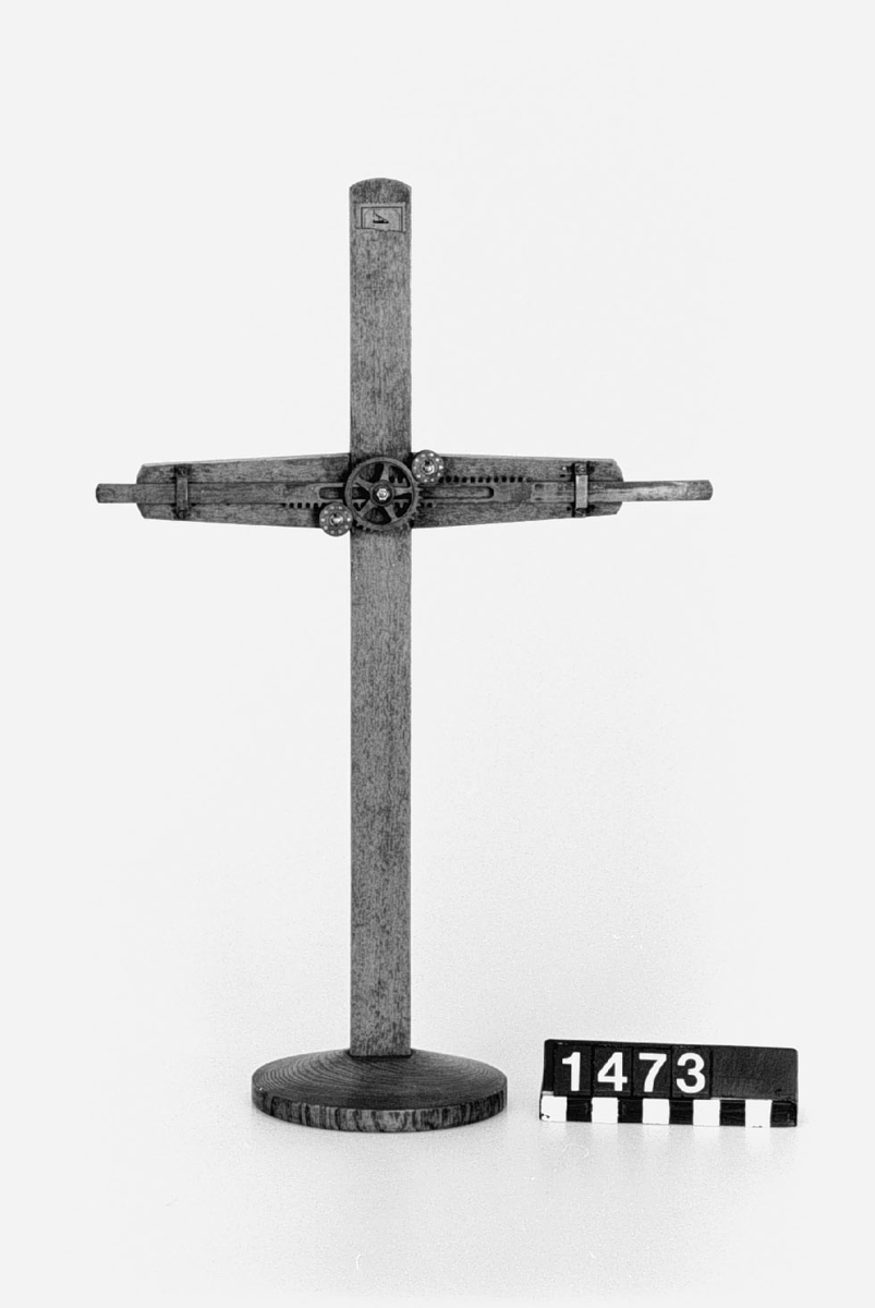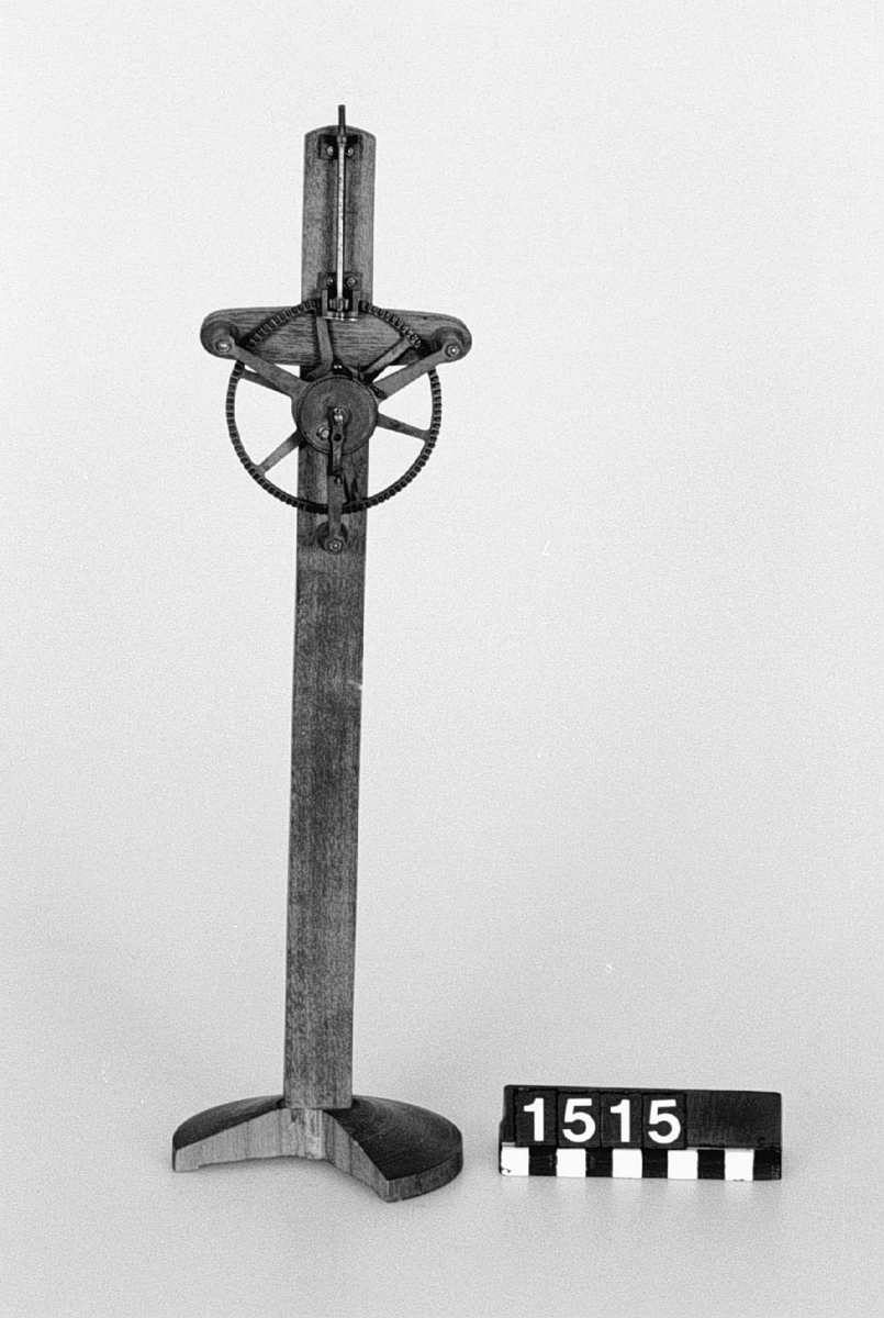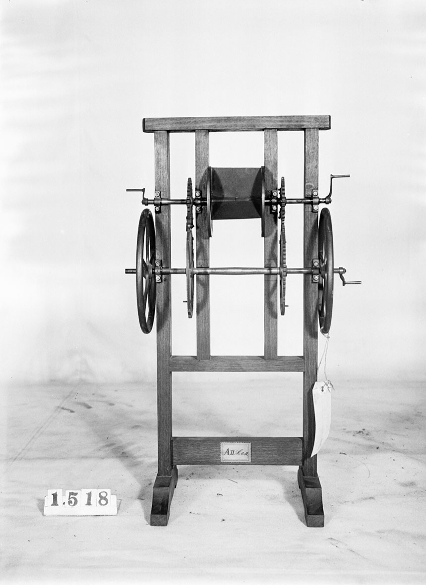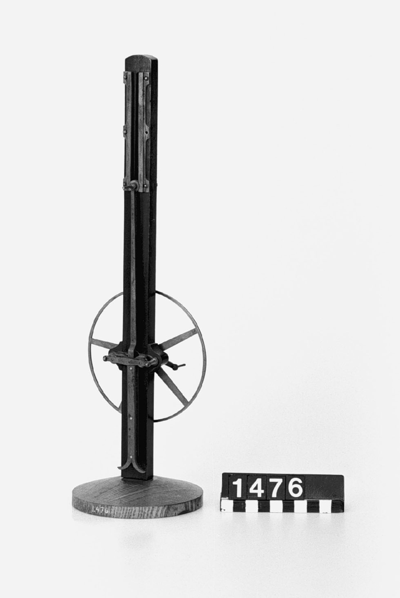 . Wooden rack with space to hold up to three telescopes and a wooden shelf above. The rack would have been attached to a wall or partition.